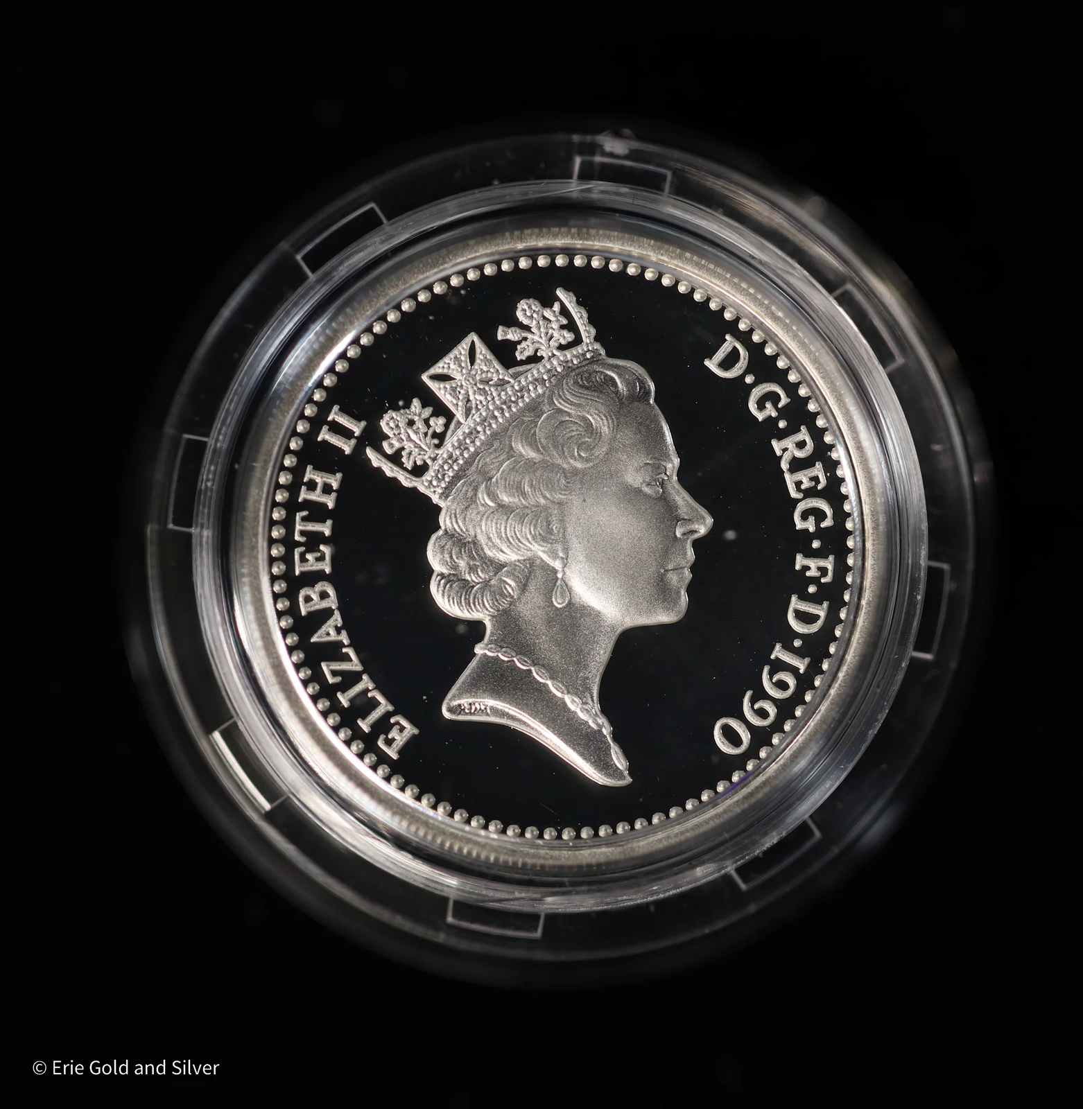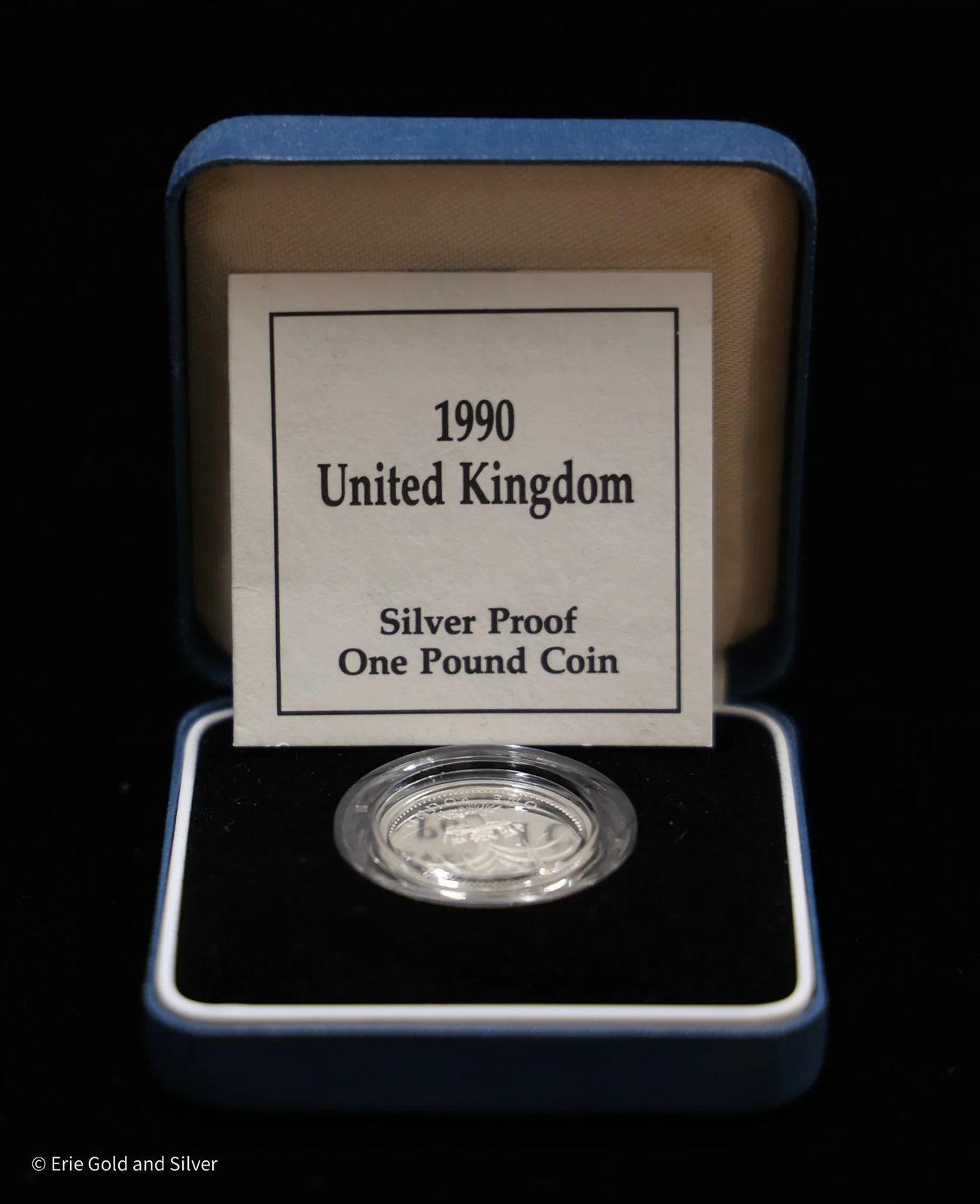 1990 Great Britain United Kingdom Silver Proof One Pound Coin w/Box & COA