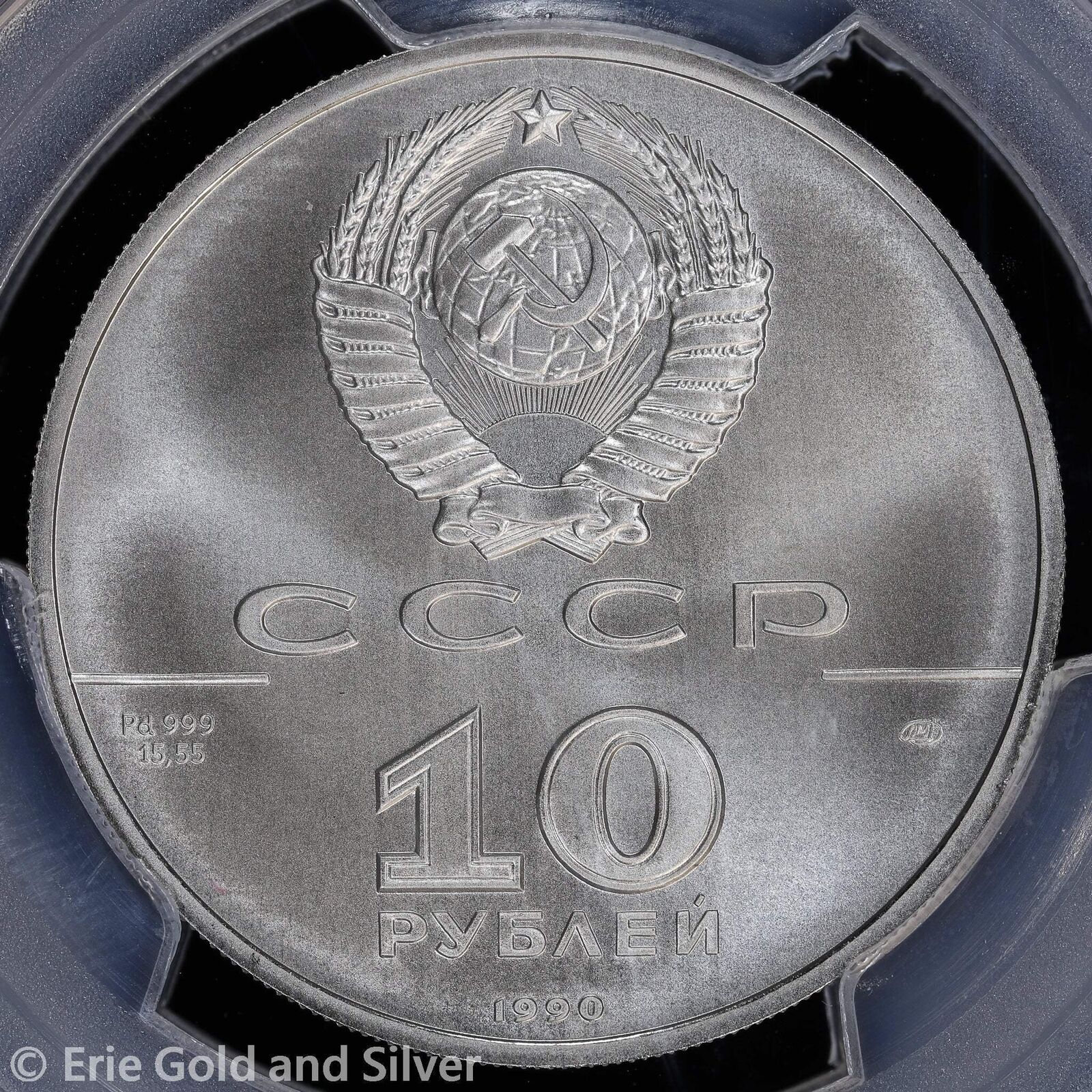 1990-LMD 10Rbl Russia 1/2 oz Palladium Ballerina PCGS MS 69 Uncirculated UNC BU