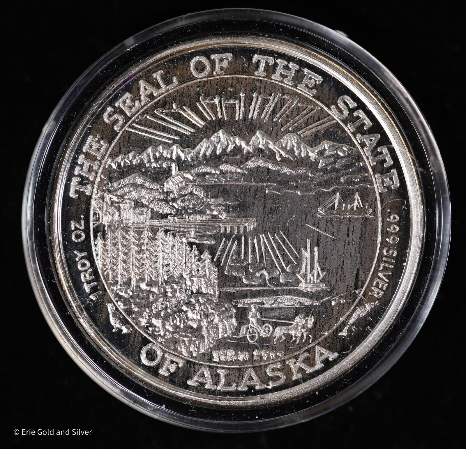 1991 Alaska Mint The Seal of the State of Alaska 1 oz Silver Round w/ Box