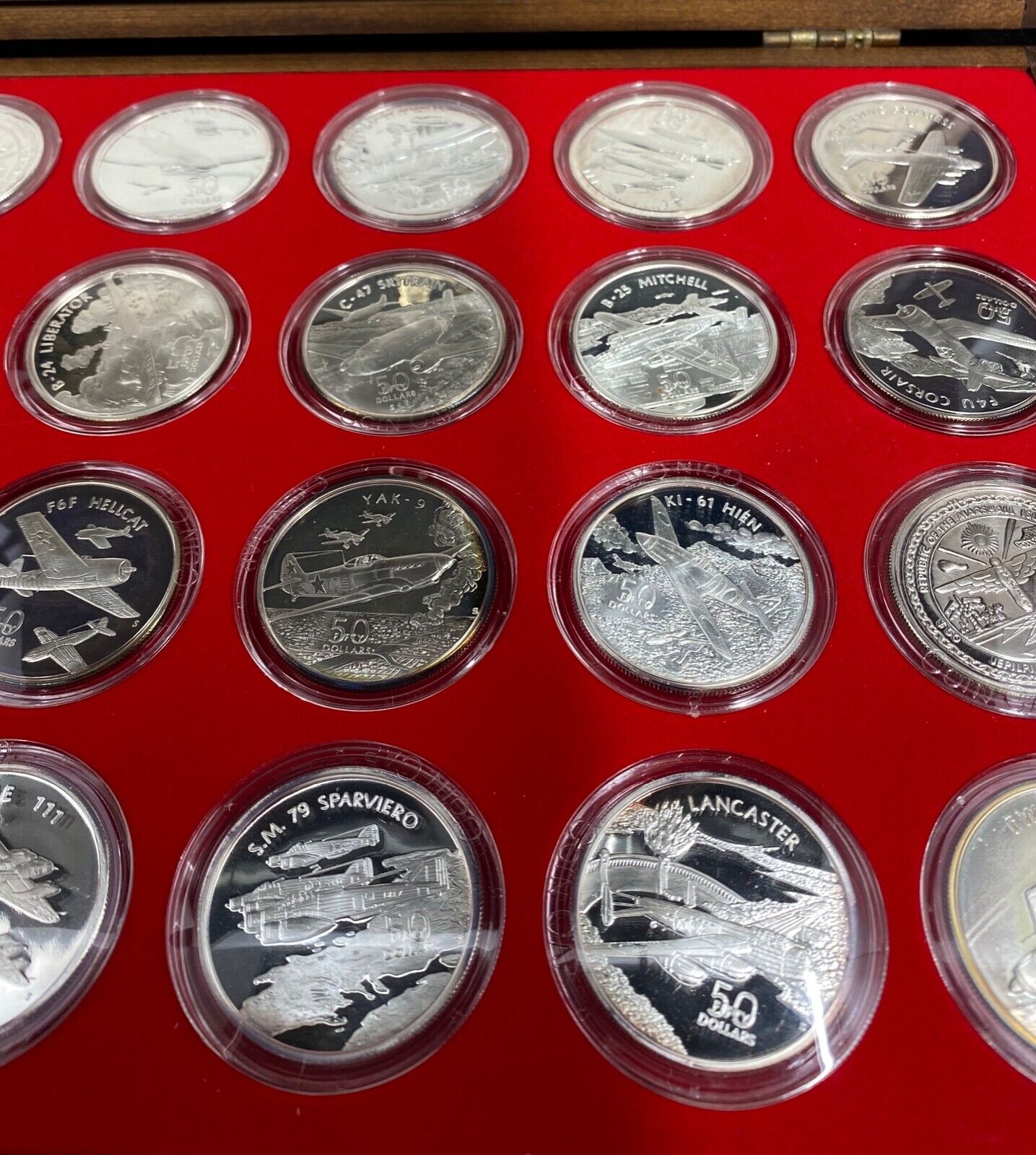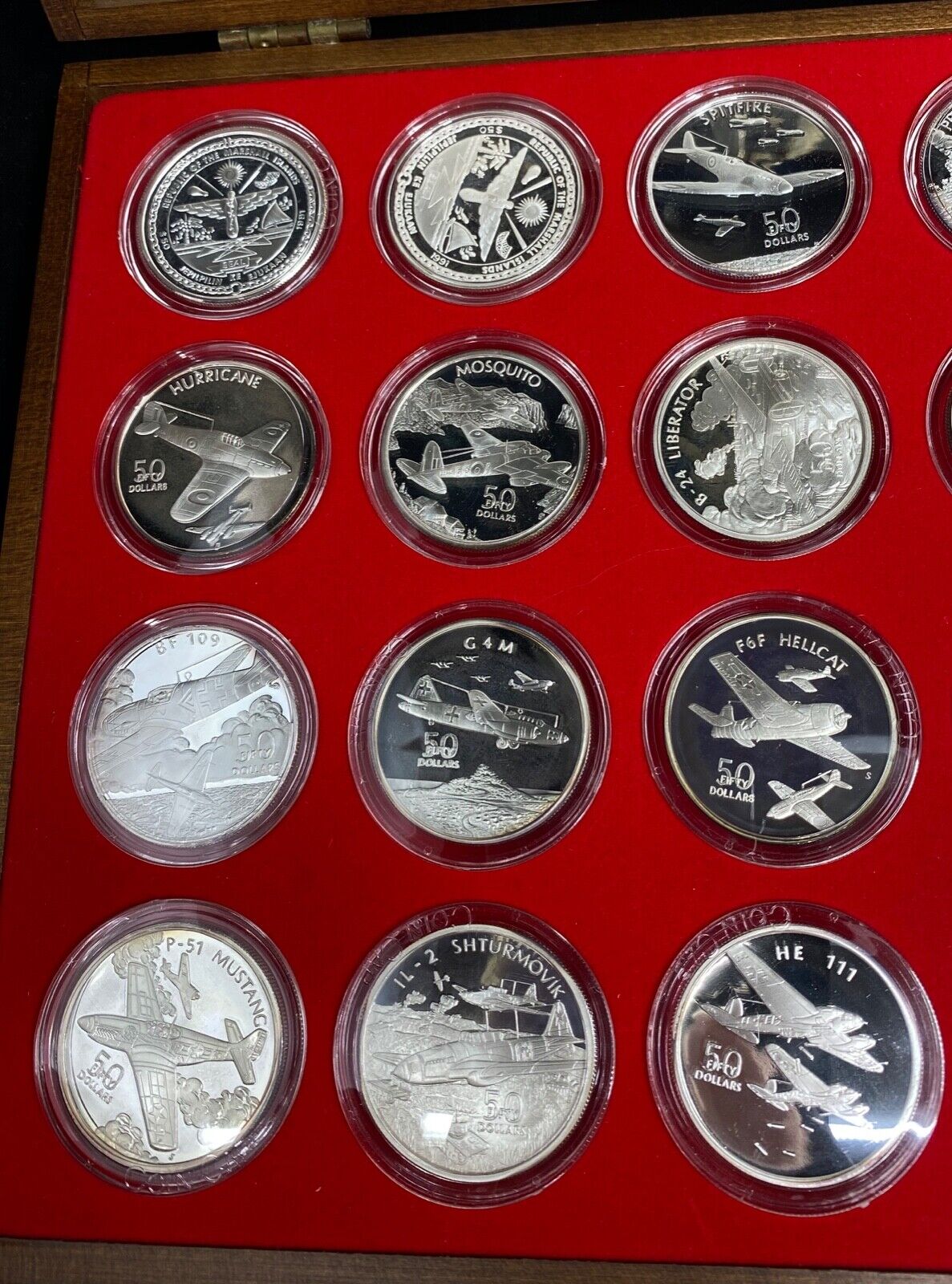 1991 Silver Proof Coin Set Legendary Aircraft of WW II with Box 24 Coins