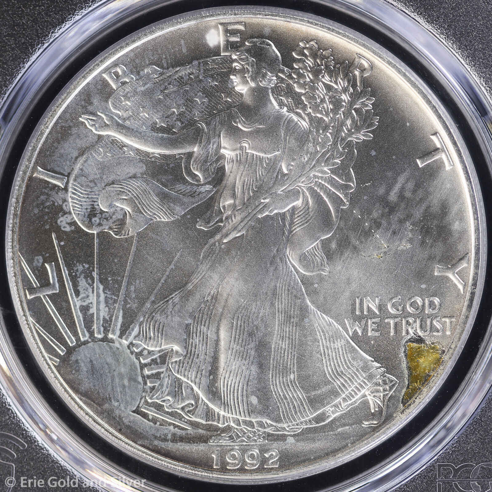 1992 $1 American Silver Eagle PCGS MS 67 | Error Struck Through Obverse