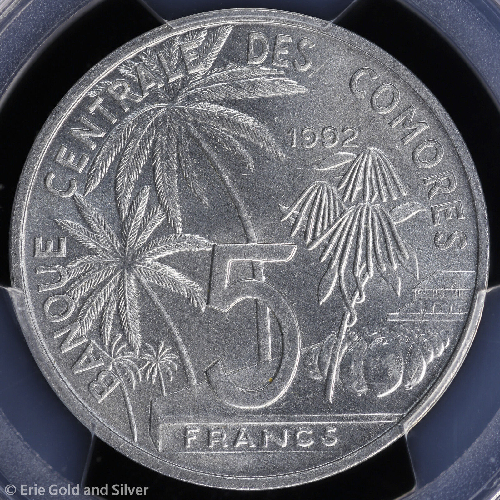 1992 5Fr Comoros World Fisheries Conference Commem Coin PCGS MS 65