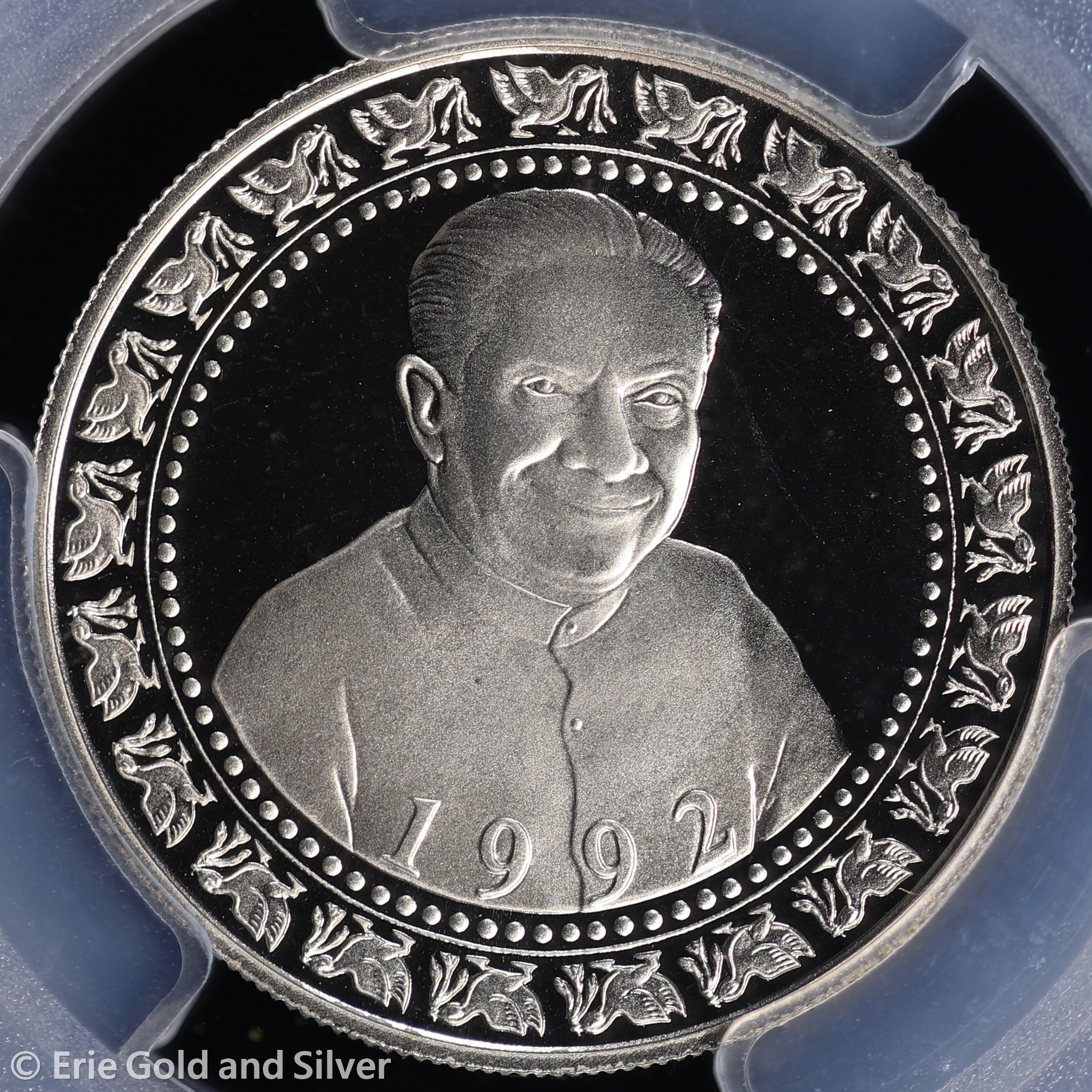 For sale is a 1992 Sri Lanka Proof President Premadasa Rupee. Certified / graded by PCGS at PR 69 DCAM.