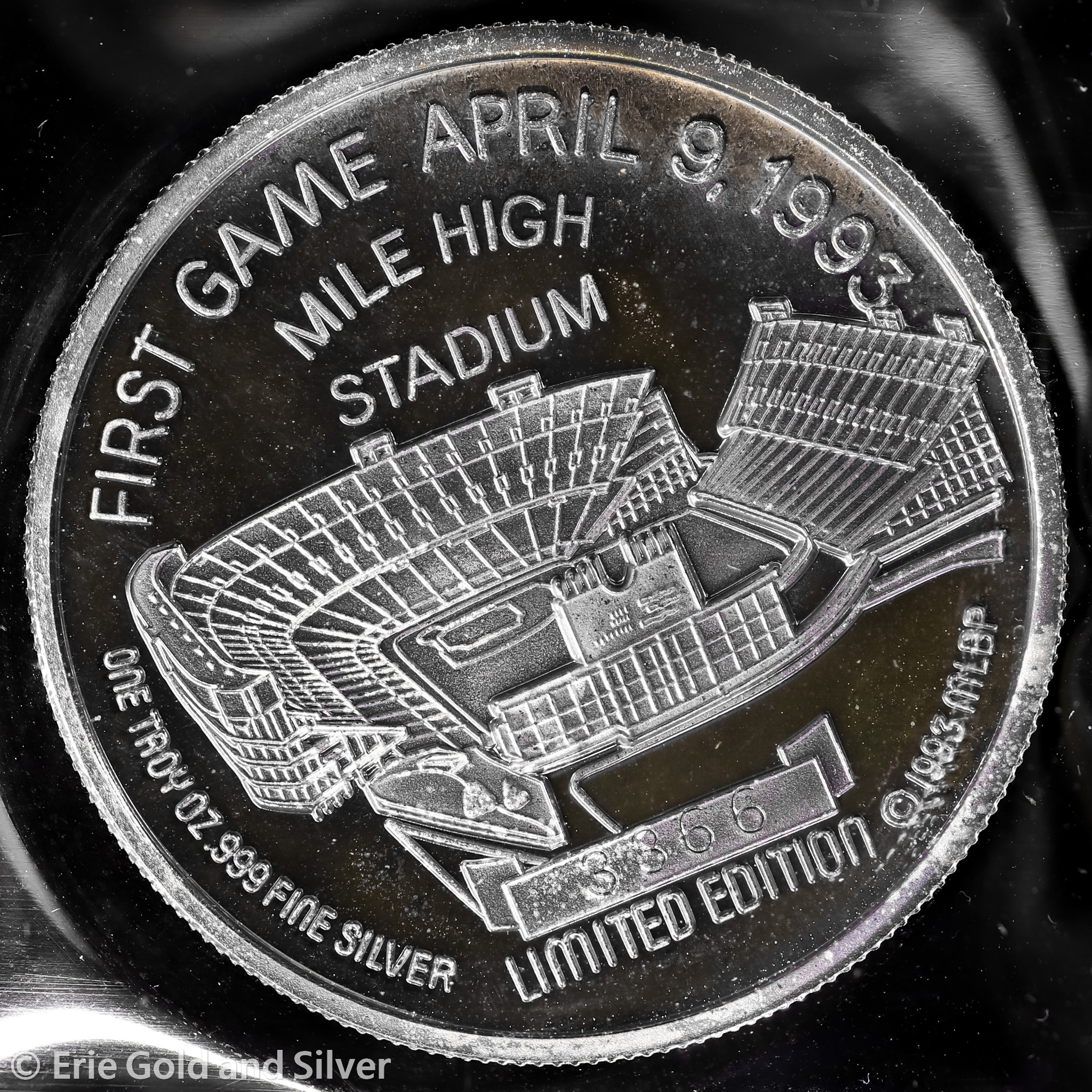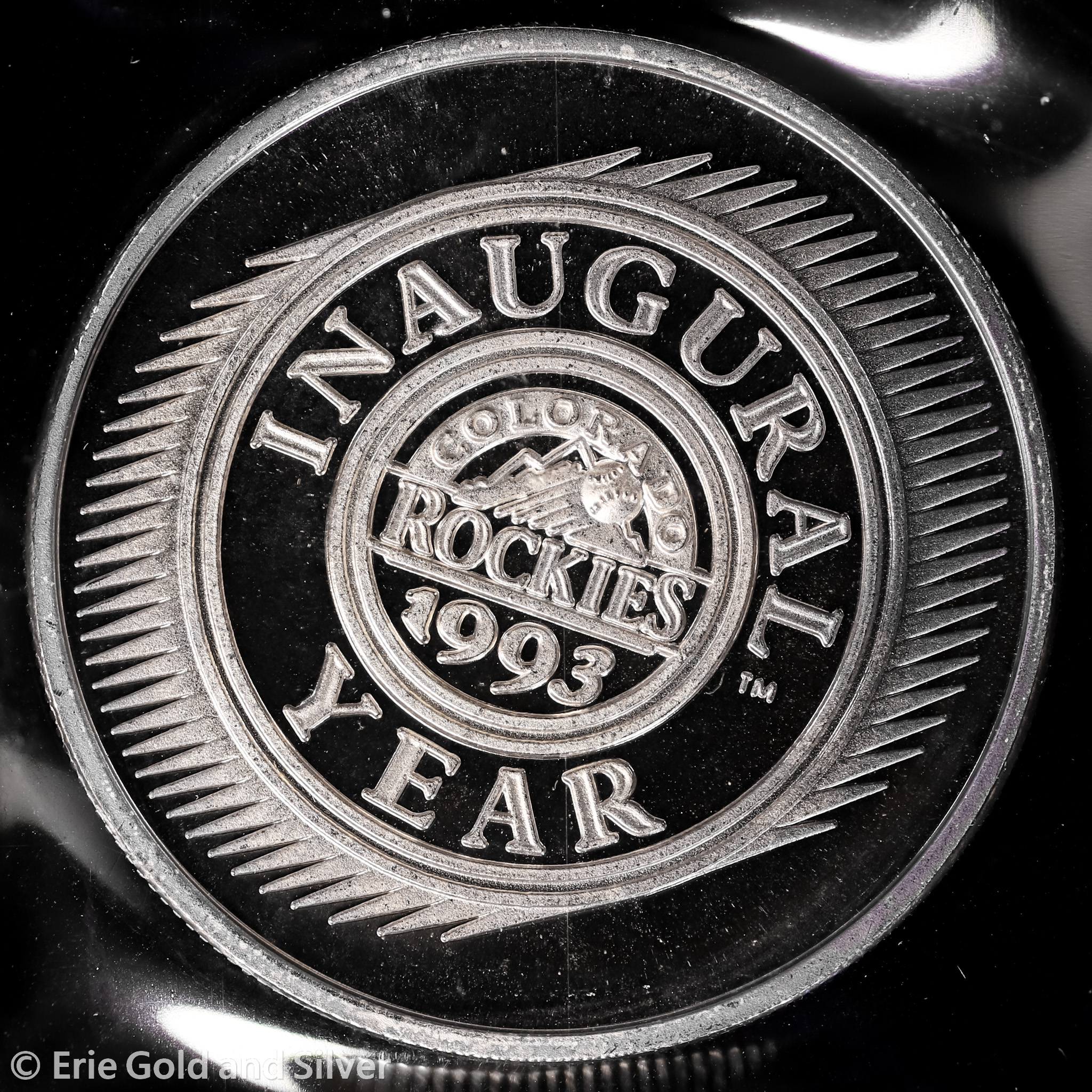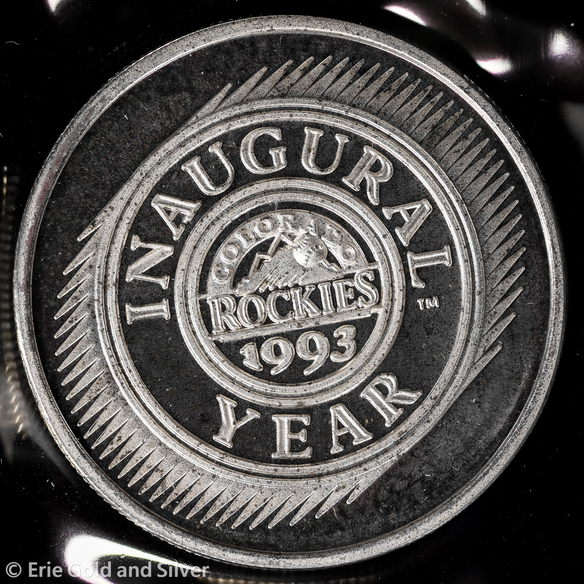 For sale is a 1993 Colorado Rockies Inaugural Year 1 oz Silver Round.