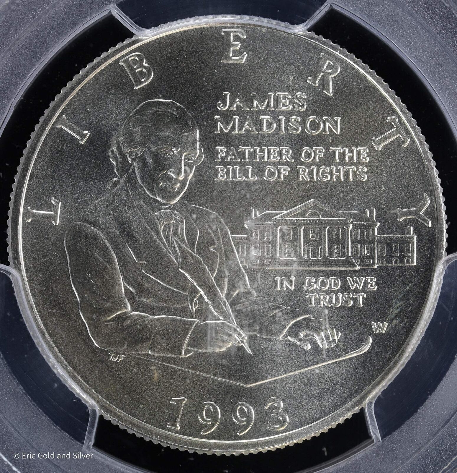 1993-W 50C James Madison Bill of Rights Silver Half Dollar PCGS MS69