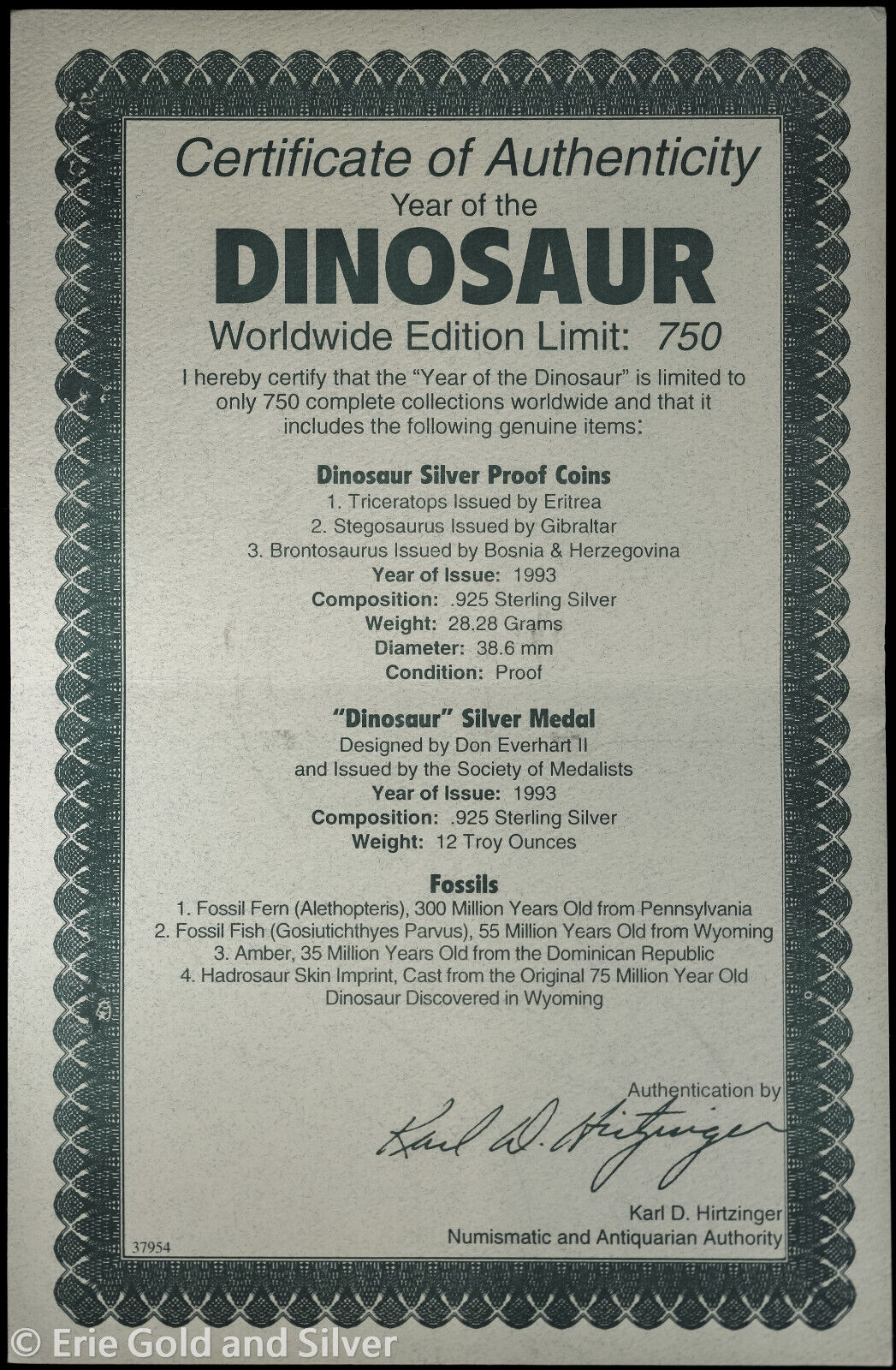 For sale is a 1993 Year of the Dinosaur Sterling Silver Coin & Medal Set. View pictures for details and condition. The set pictured is the exact set you will receive. Feel free to contact us with any questions.