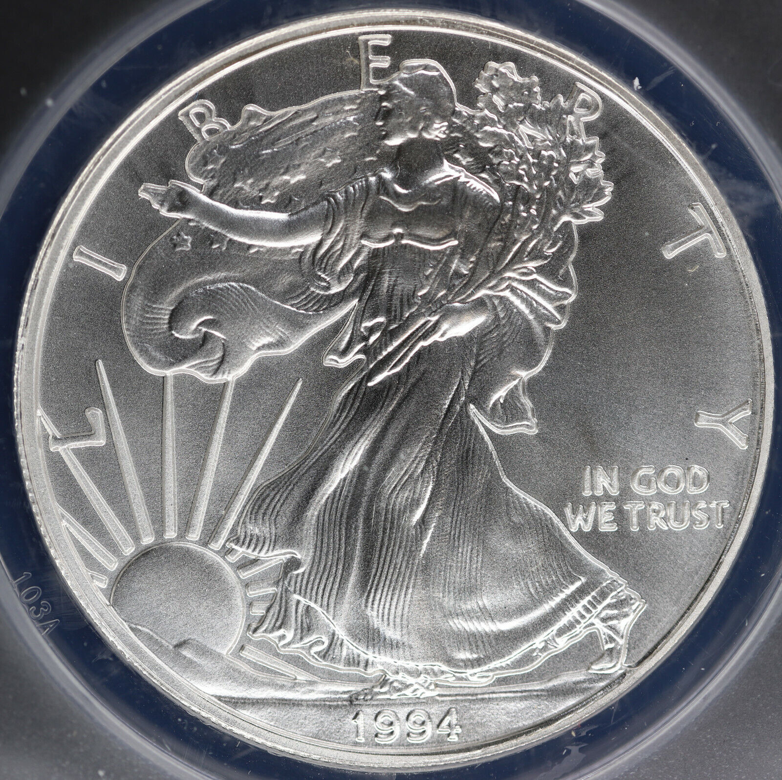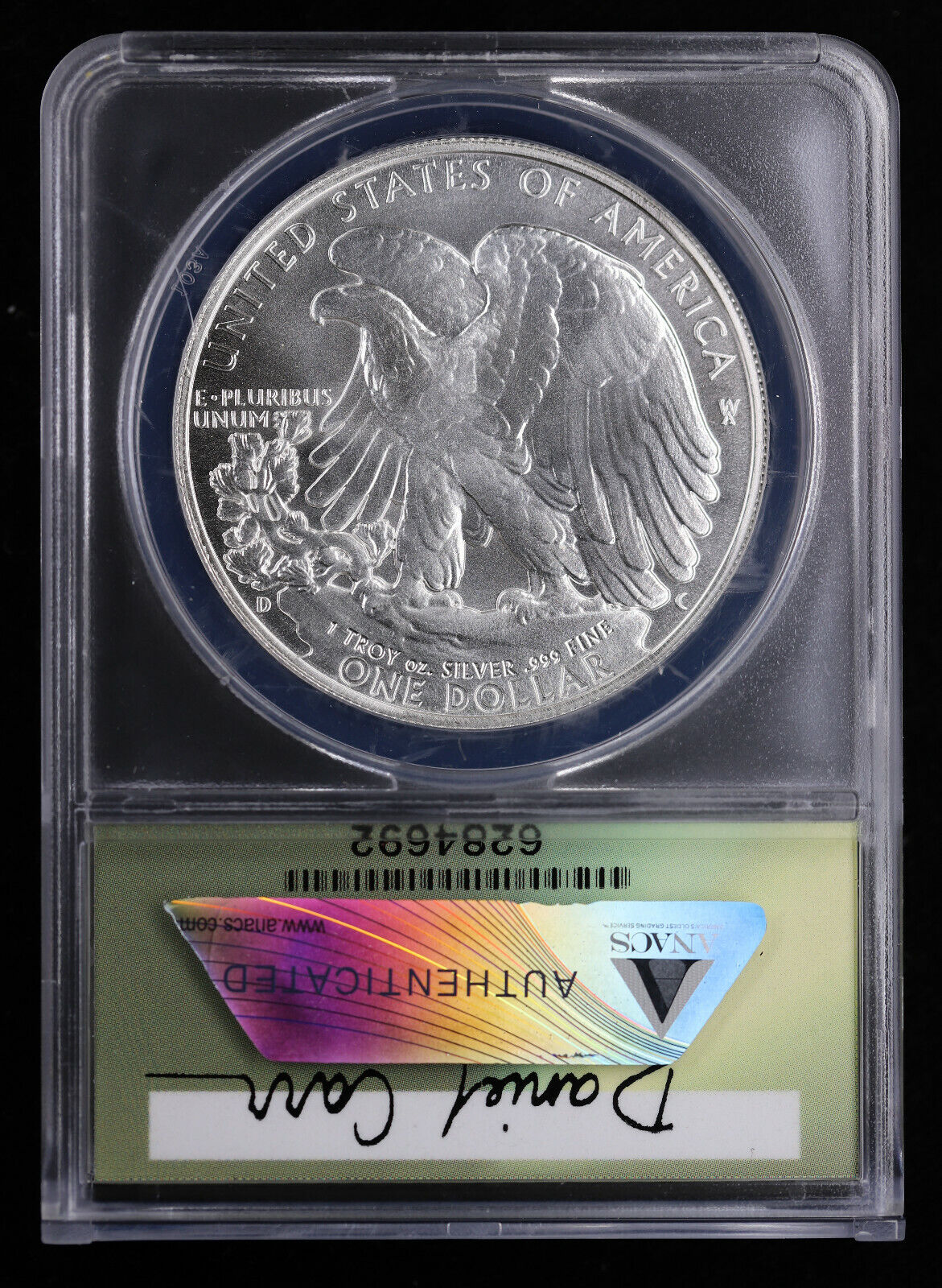 1994 D Token Dan Carr Walking LIberty $ O/S on USA Silver Eagle ANACS MS70