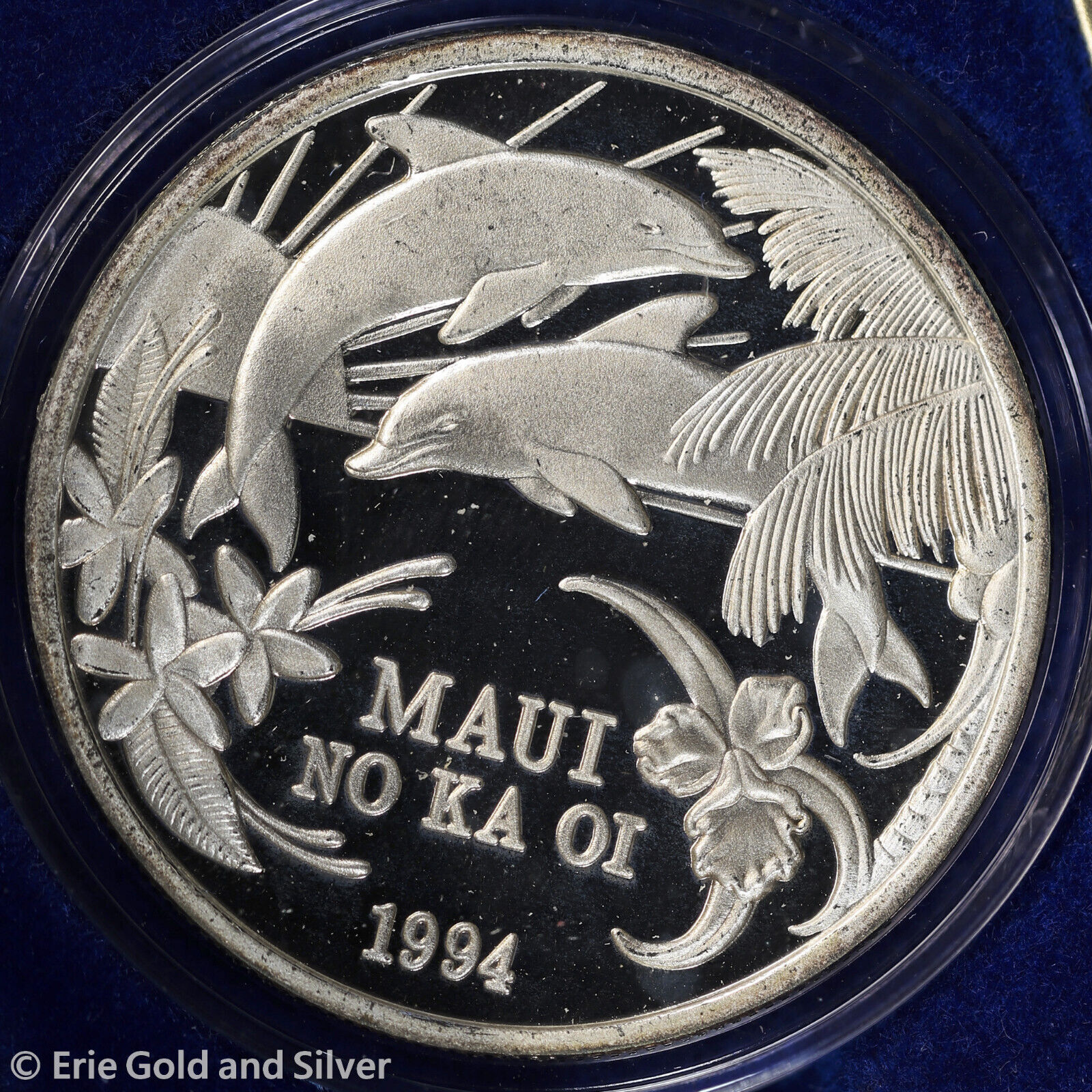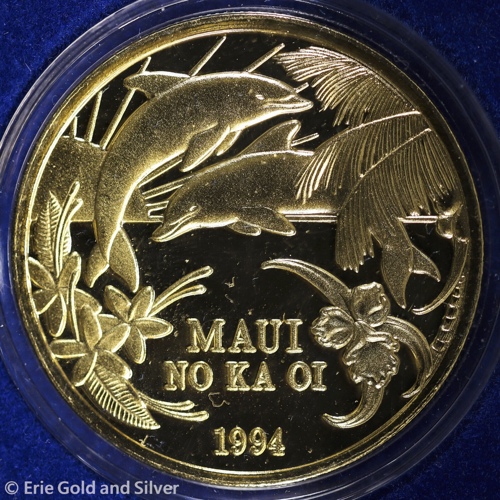 1994 Maui Trade Dollar 1 oz Silver & 22kt Gold-Plated 3-Coin Set with Box
