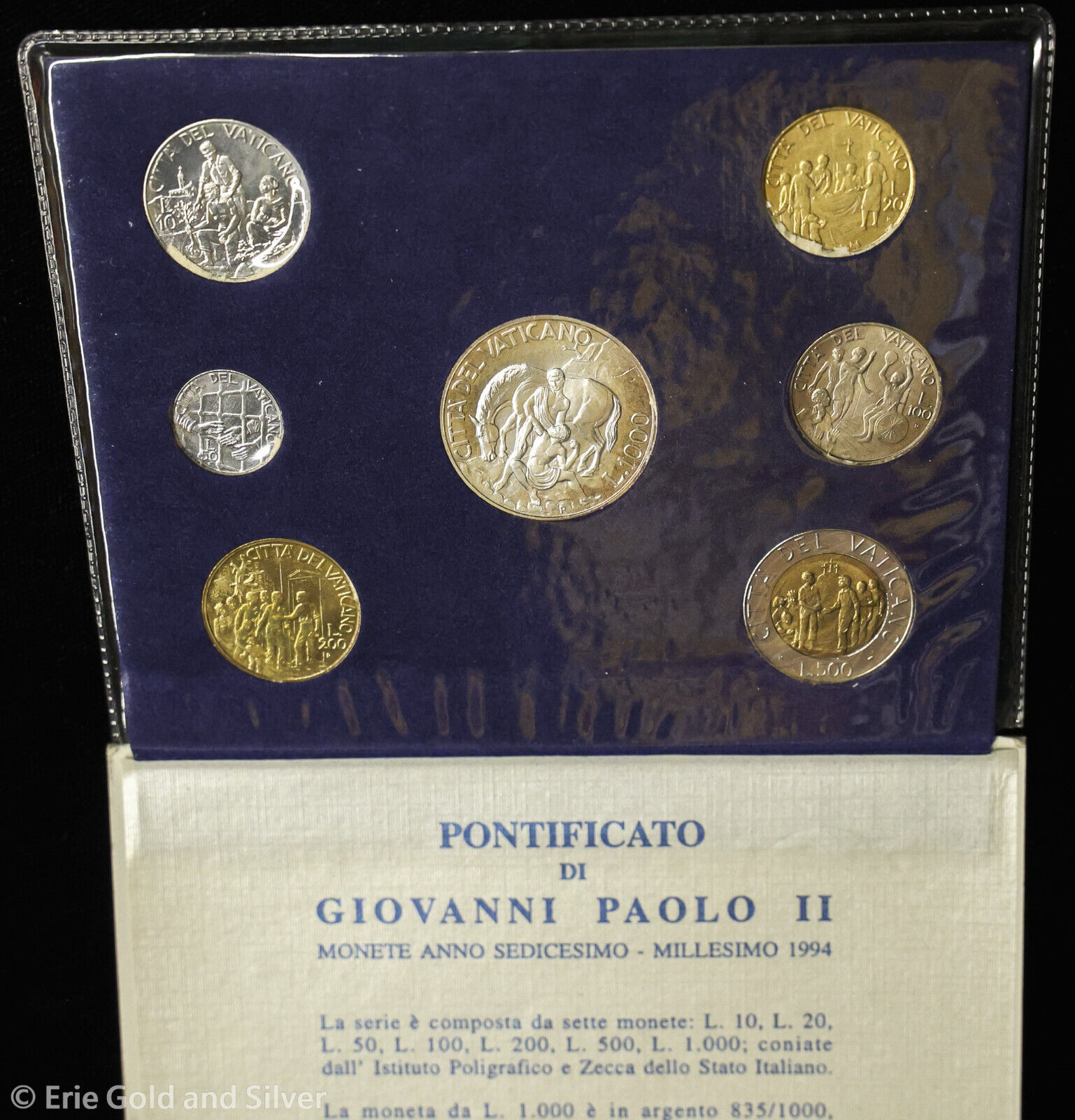 For sale is a 1994 Vatican City Pontiff John Paul II Anno XVI Mint Set. View pictures for details and condition. The item pictured is the exact item you will receive. Feel free to contact us with any questions.
