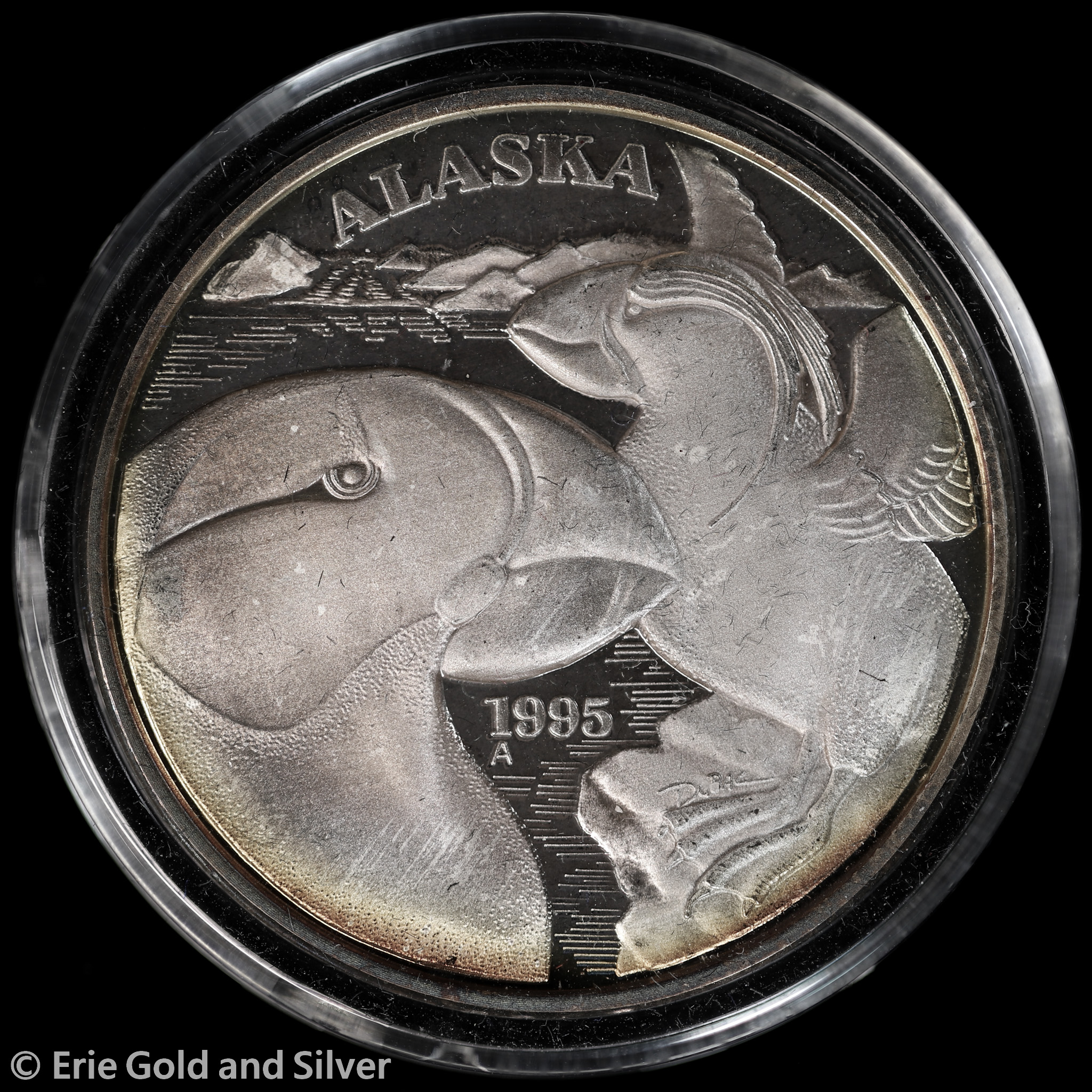 1995 Alaska Mint Puffins 1 oz Silver Round w/ Box
