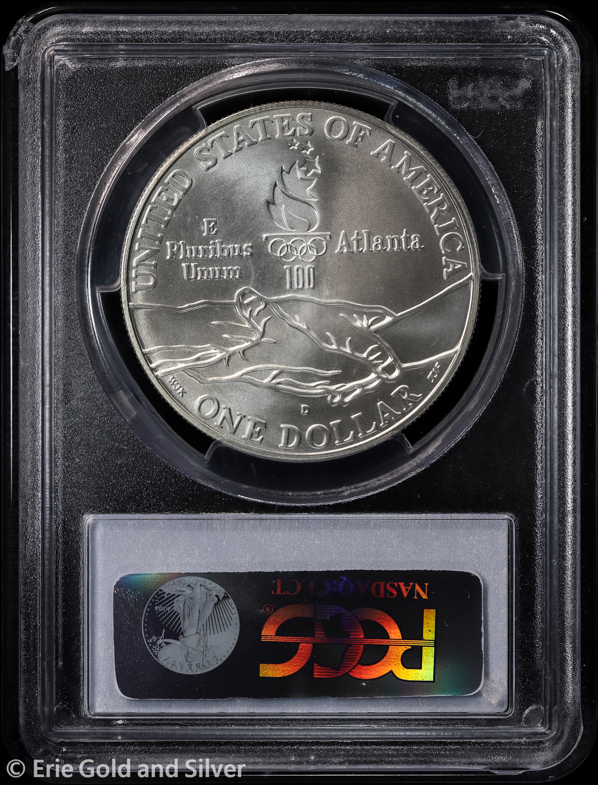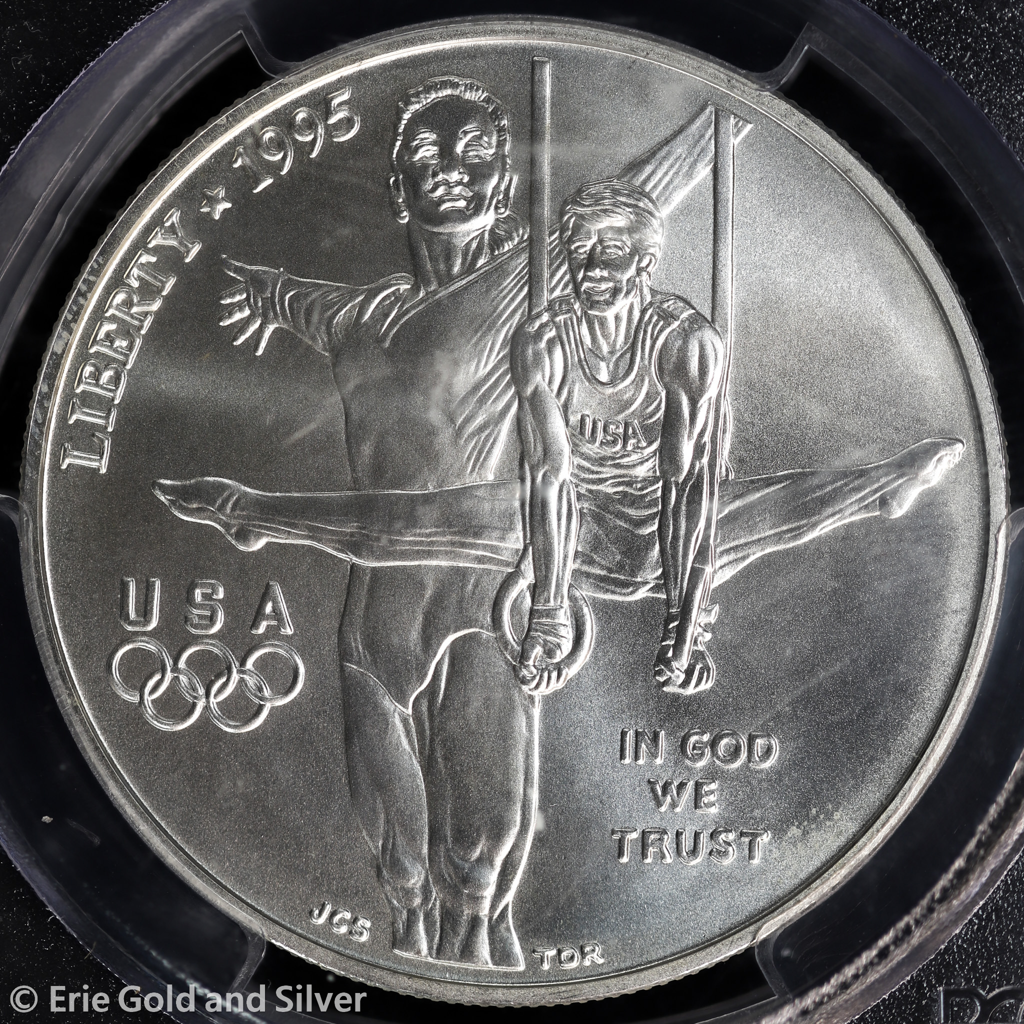 For sale is a 1995-D Olympic Games Gymnastics Commemorative Silver Dollar. Certified / graded by PCGS at MS 69.