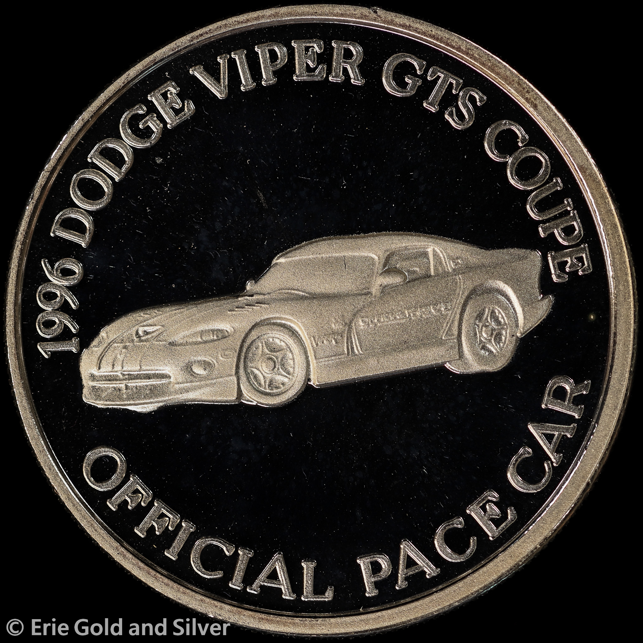 For sale is a 1995 Enviromint Indianapolis Motor Speedway - 1996 Dodge Viper GTS Coupe Pace Car 1 oz Silver Round.
