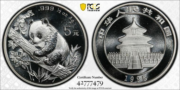 1995 Large Date China 1/2 oz Silver Panda 5 Yuan Coin PCGS MS 69 | PAN-252A