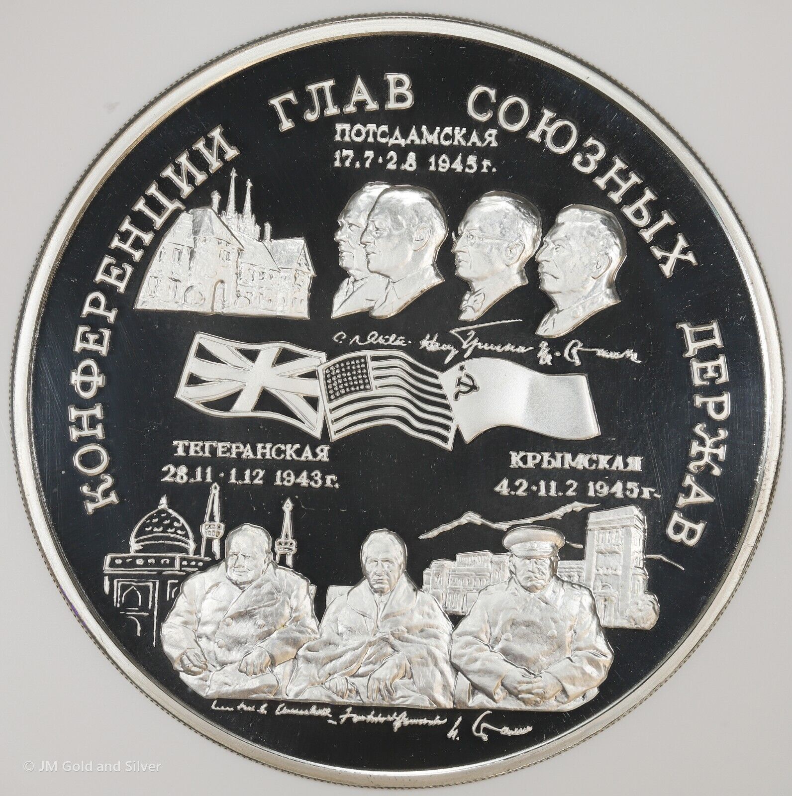 1995 (M) 100 Roubles Proof Silver Kilo WWII Allied Powers NGC PF 69 Ultra Cameo