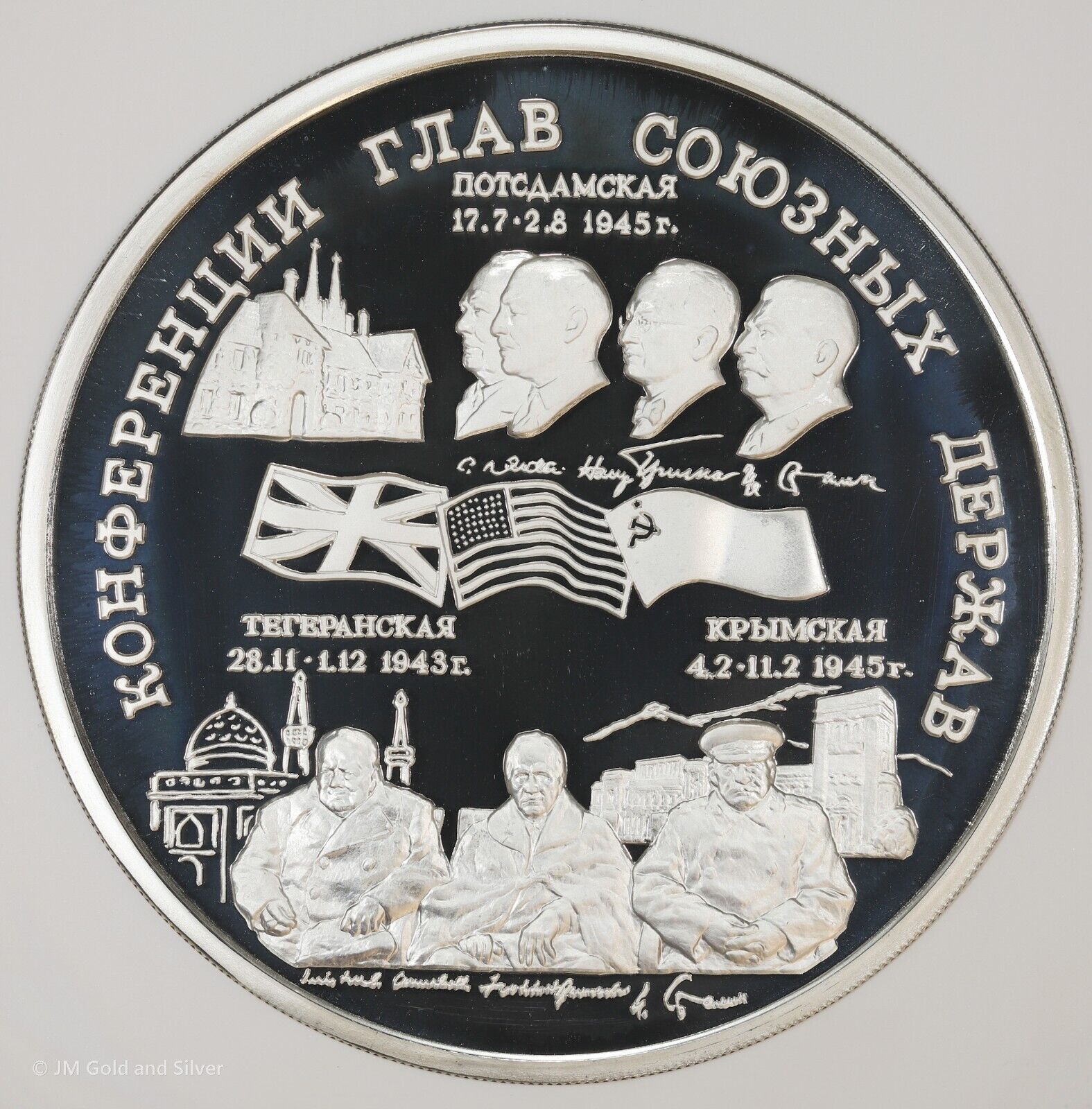 1995 (M) 100 Roubles Proof Silver Kilo WWII Allied Powers NGC PF 69 Ultra Cameo