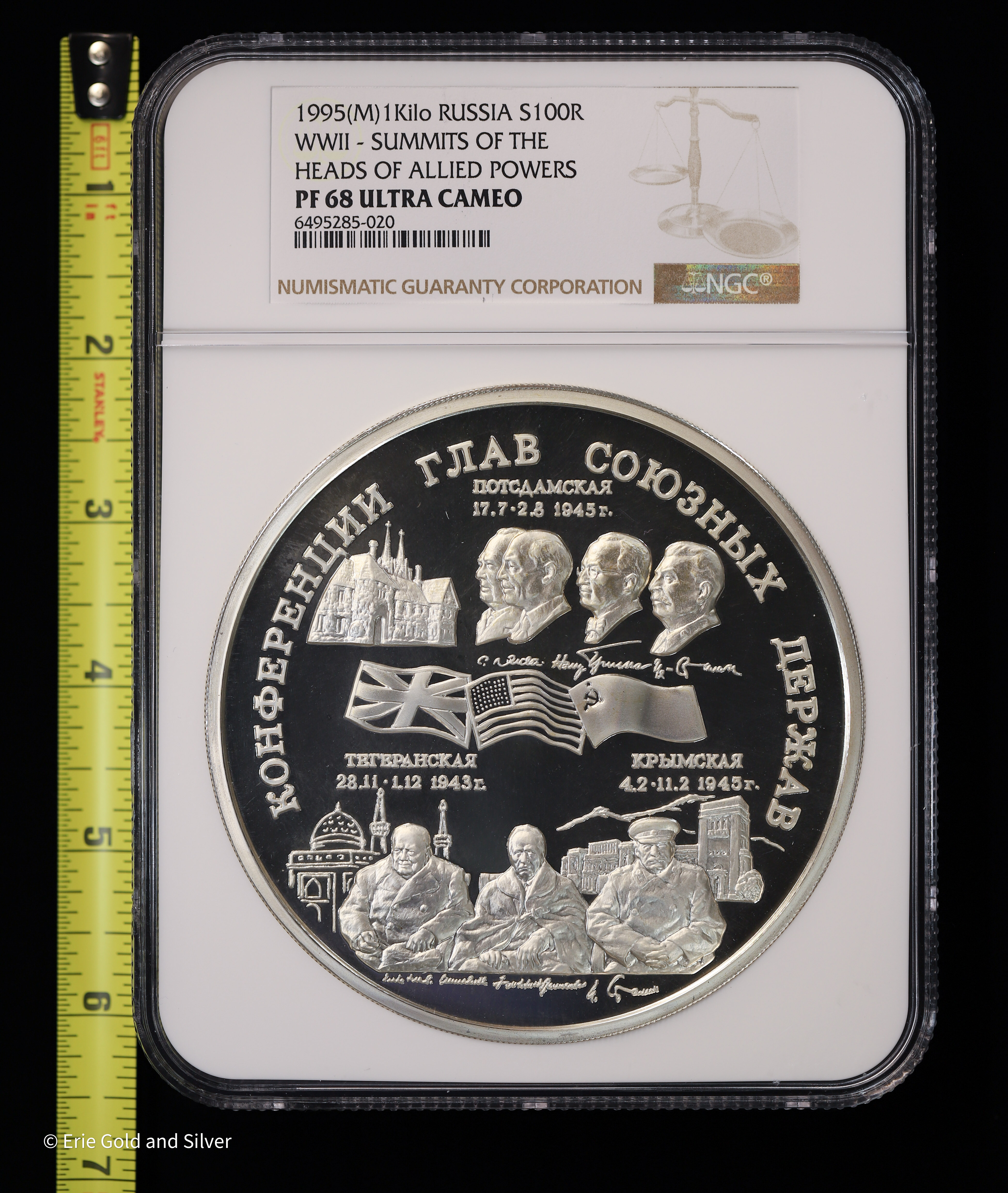 1995 Russia WWll Summits of the Heads of Allied Powers NGC PF68 1 Kilo