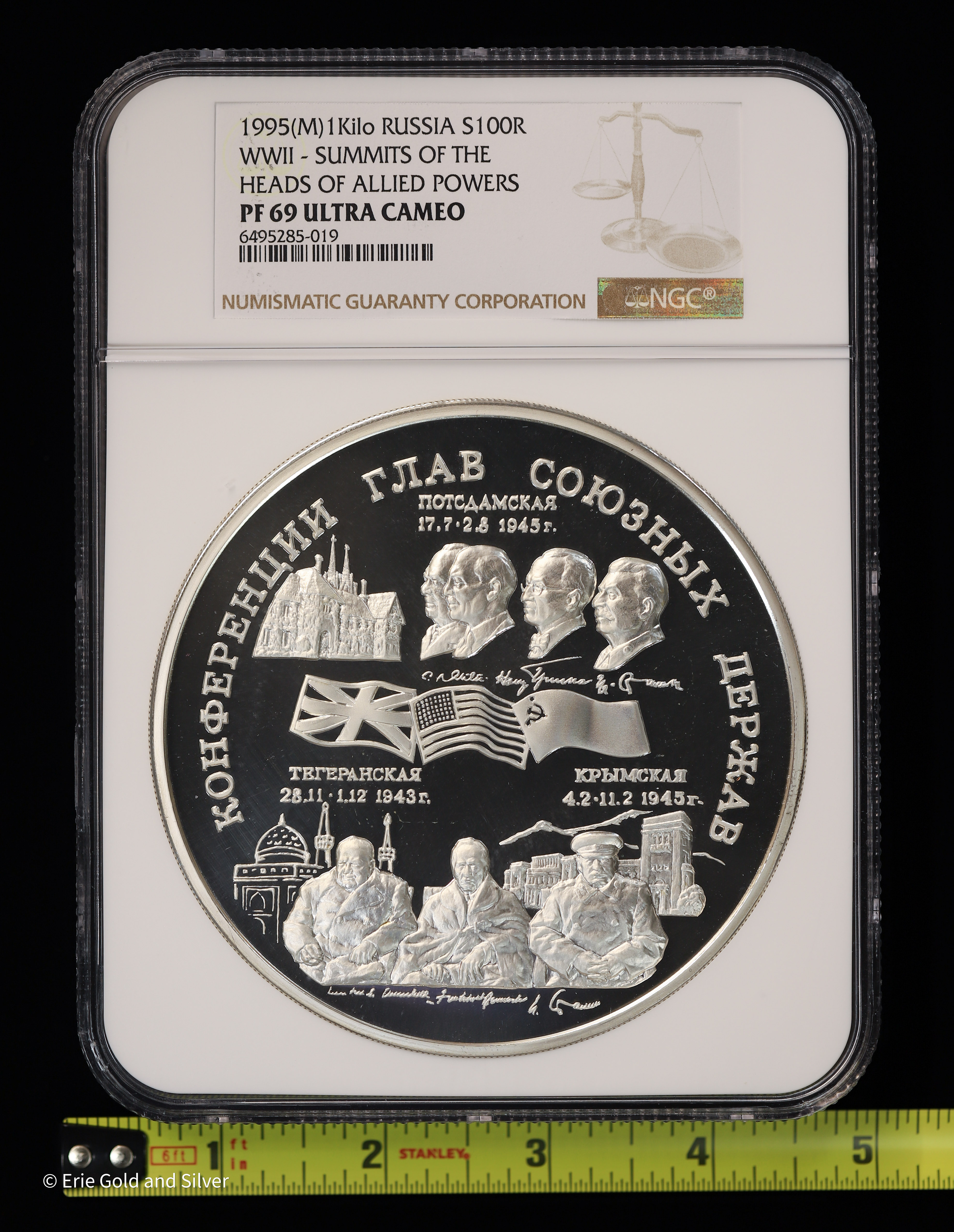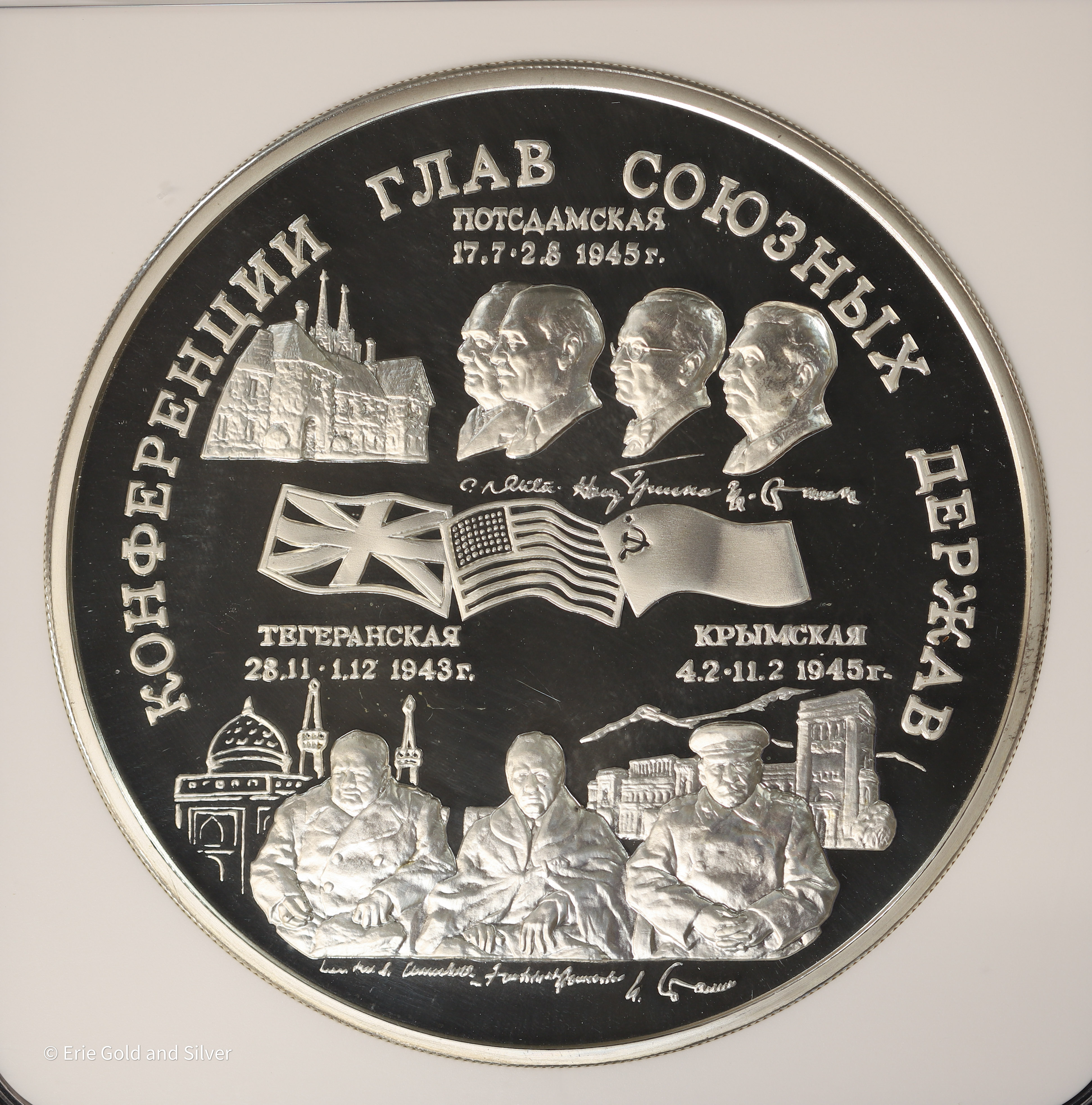 1995 Russia WWll Summits of the Heads of Allied Powers NGC PF69 1 Kilo
