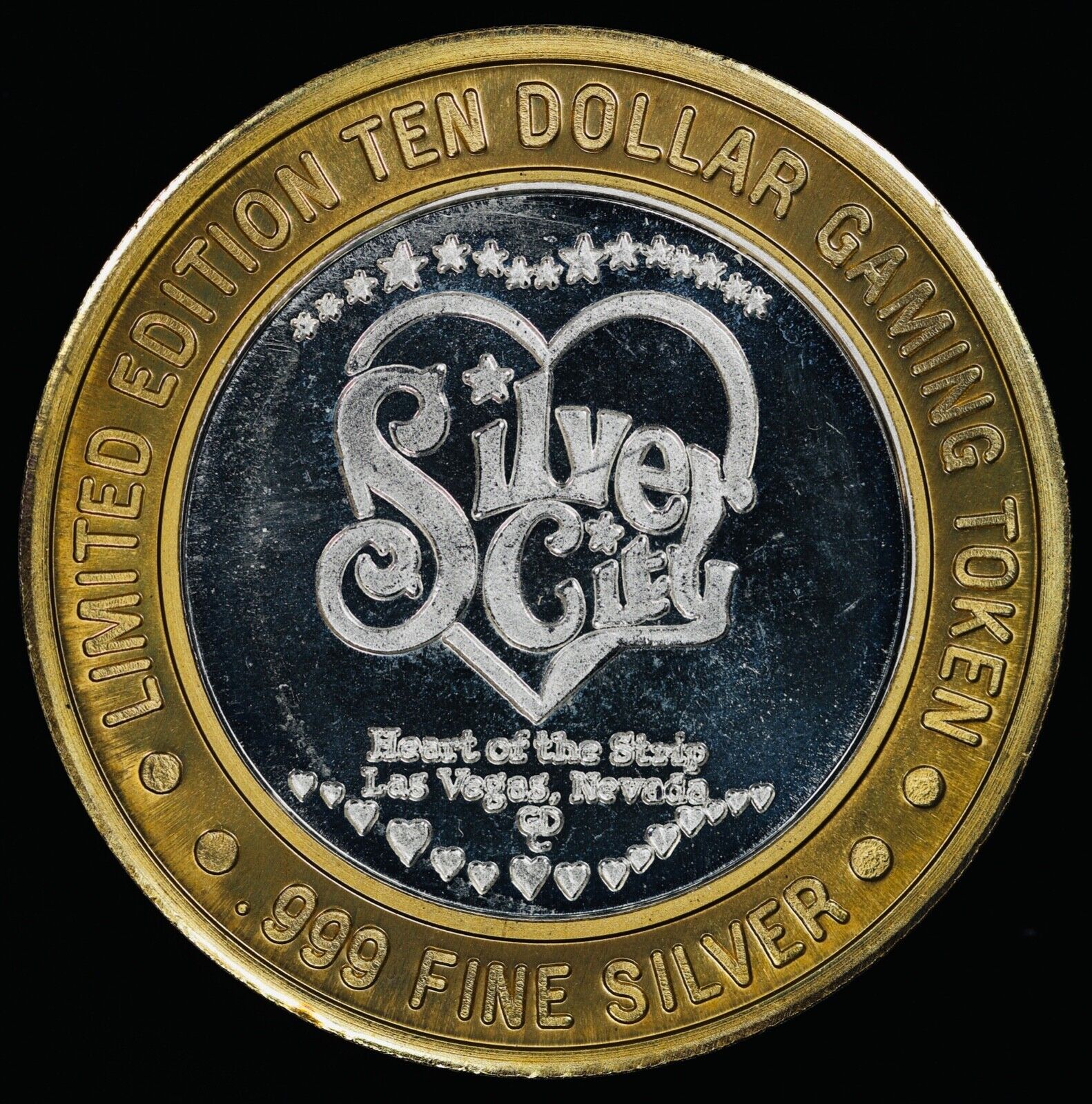 1995 Silver City Las Vegas NV $10 Casino .999 Silver Strike Stagecoach