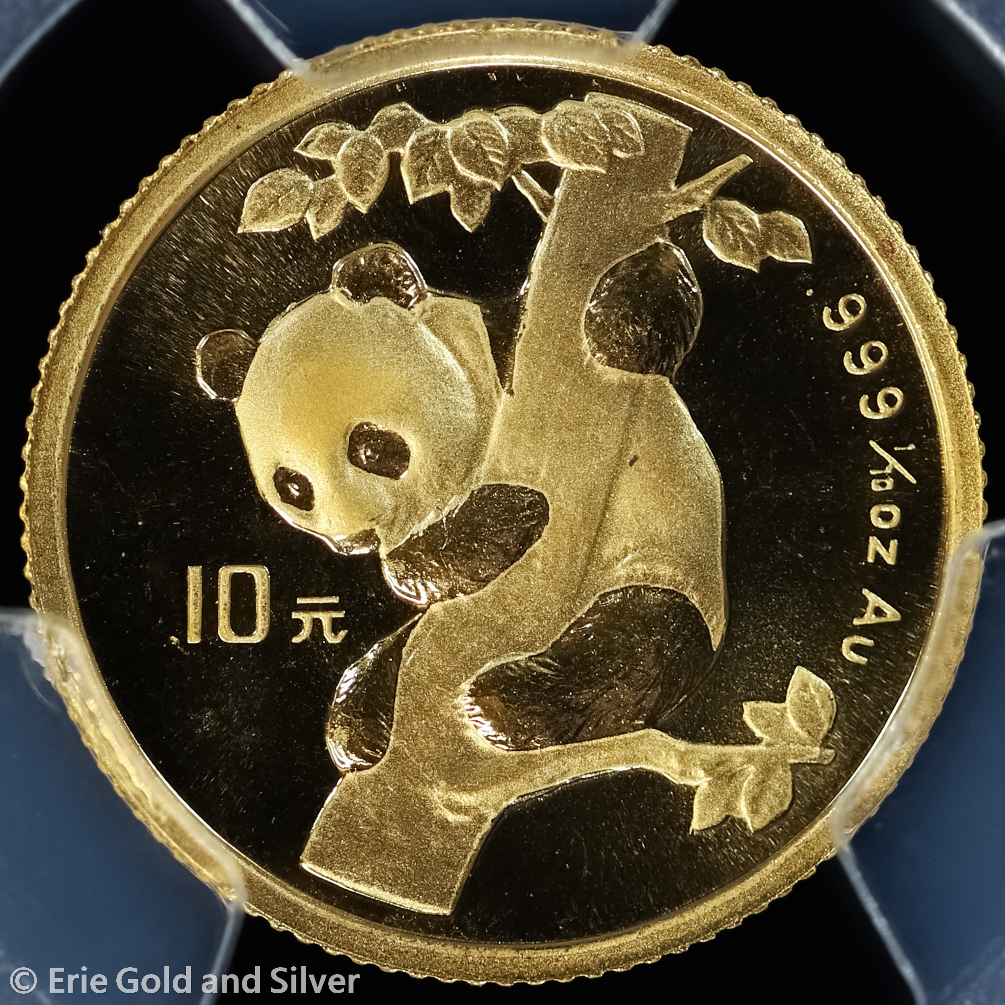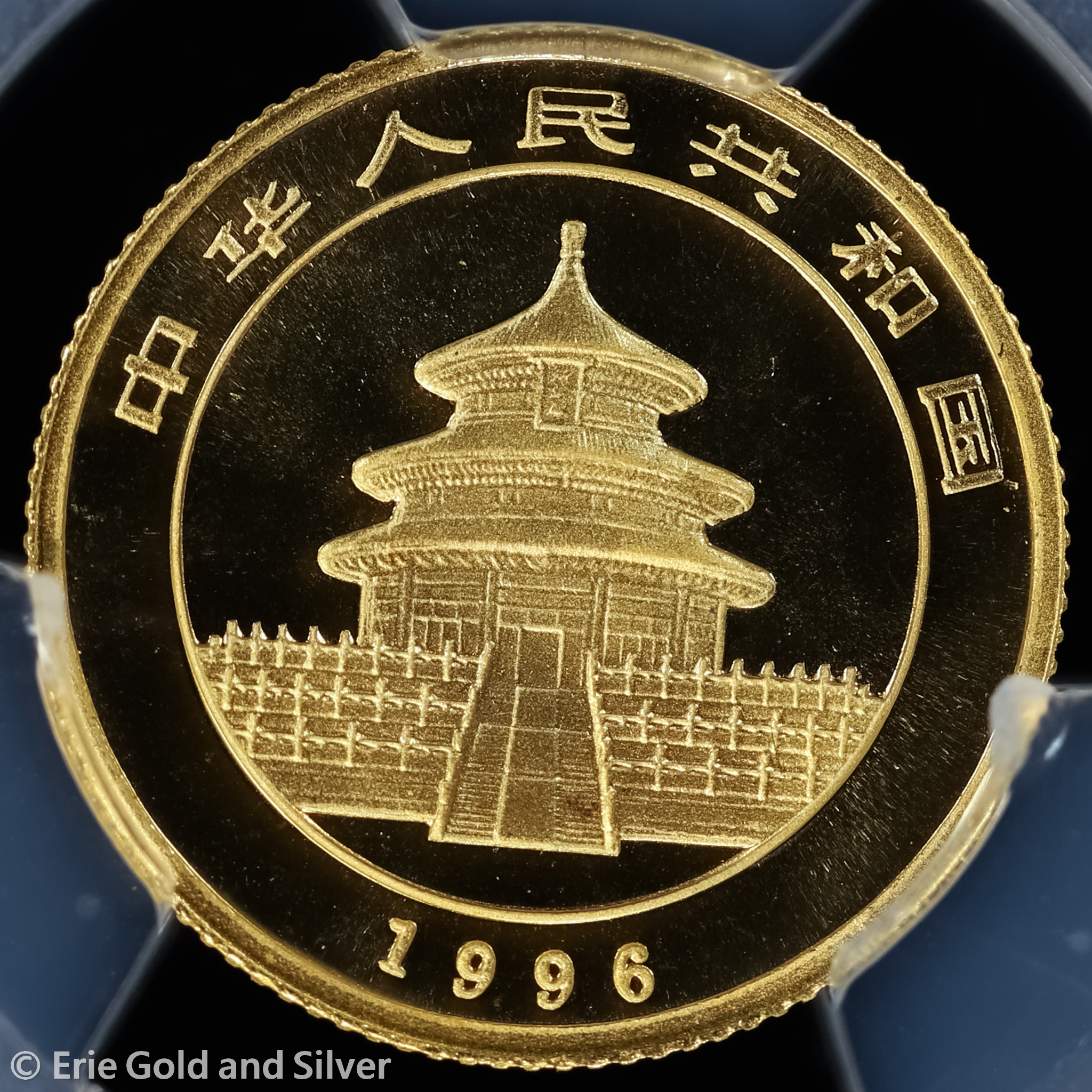 • 1996 10Yn China 1/10 oz Gold Panda PCGS MS 69 | Large Date PAN-259B