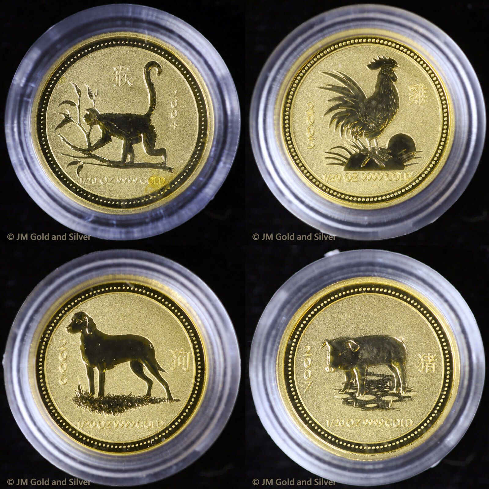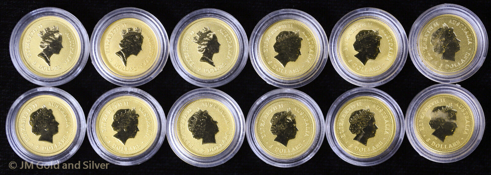 1996-2007 $5 Australia 1/20 oz Gold Lunar 12-Coin Set