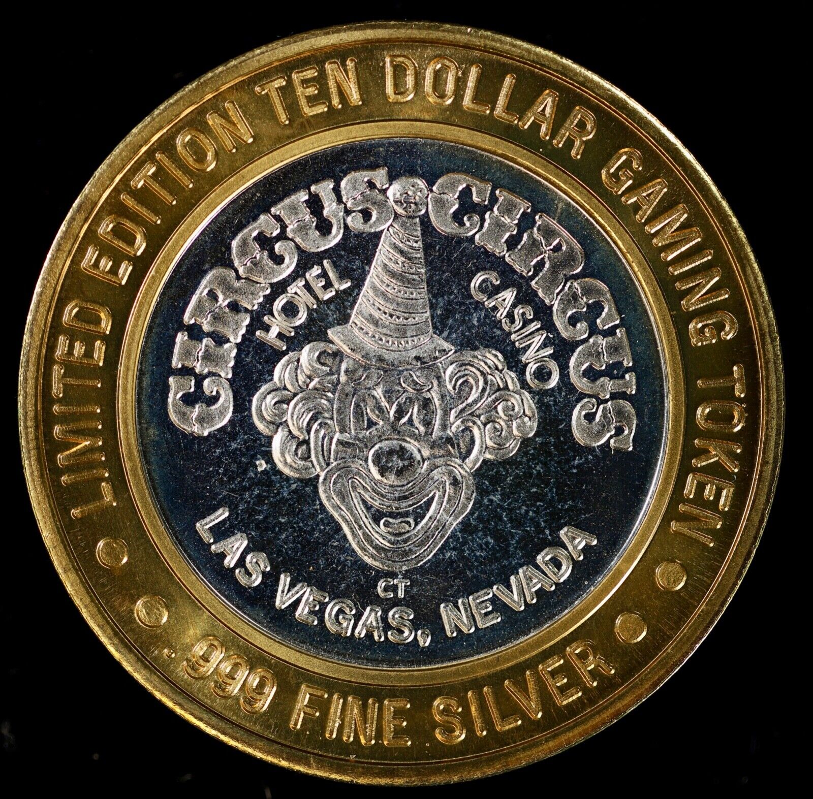 1996 Circus Circus Las Vegas NV $10 Casino Silver Strike Roller Coaster Clown