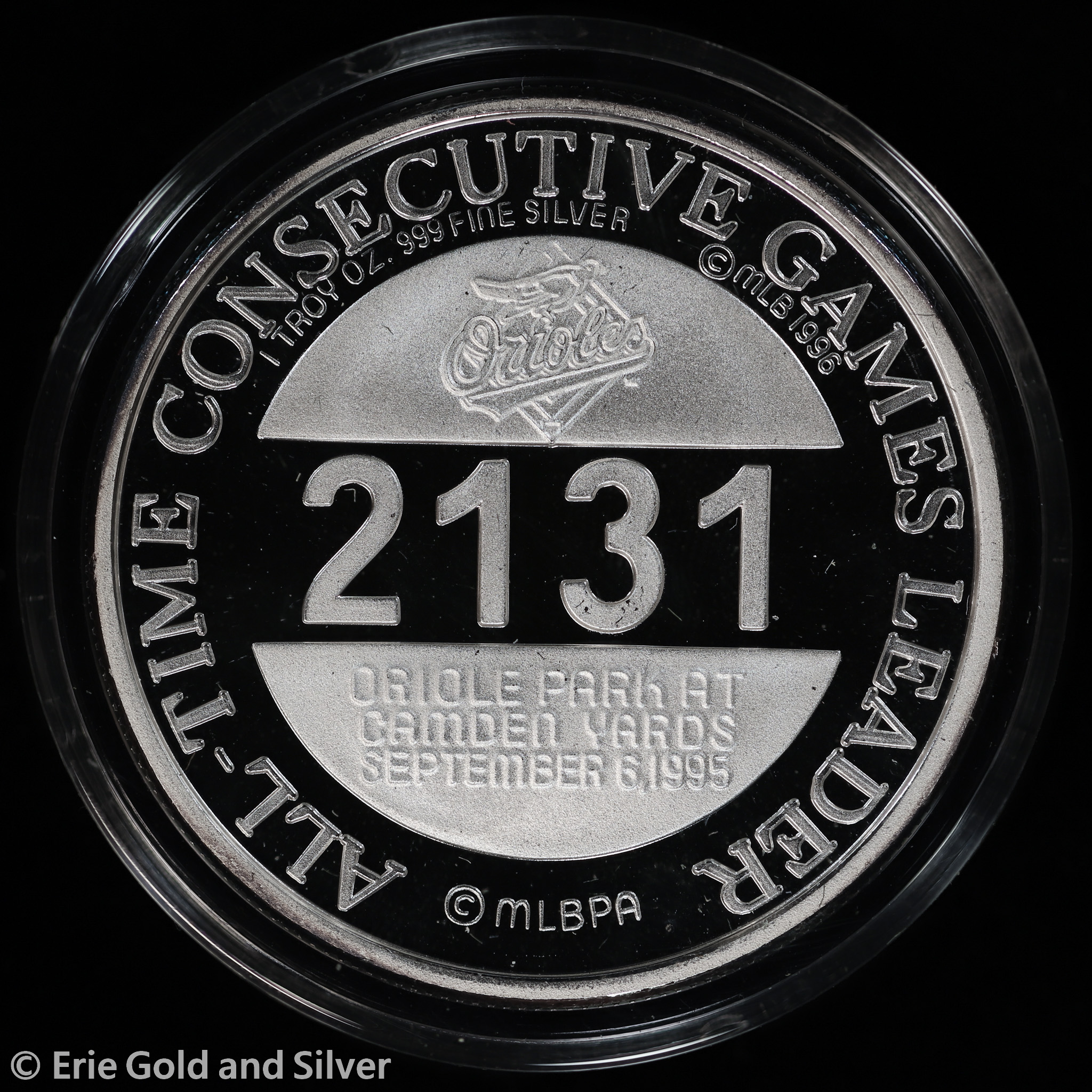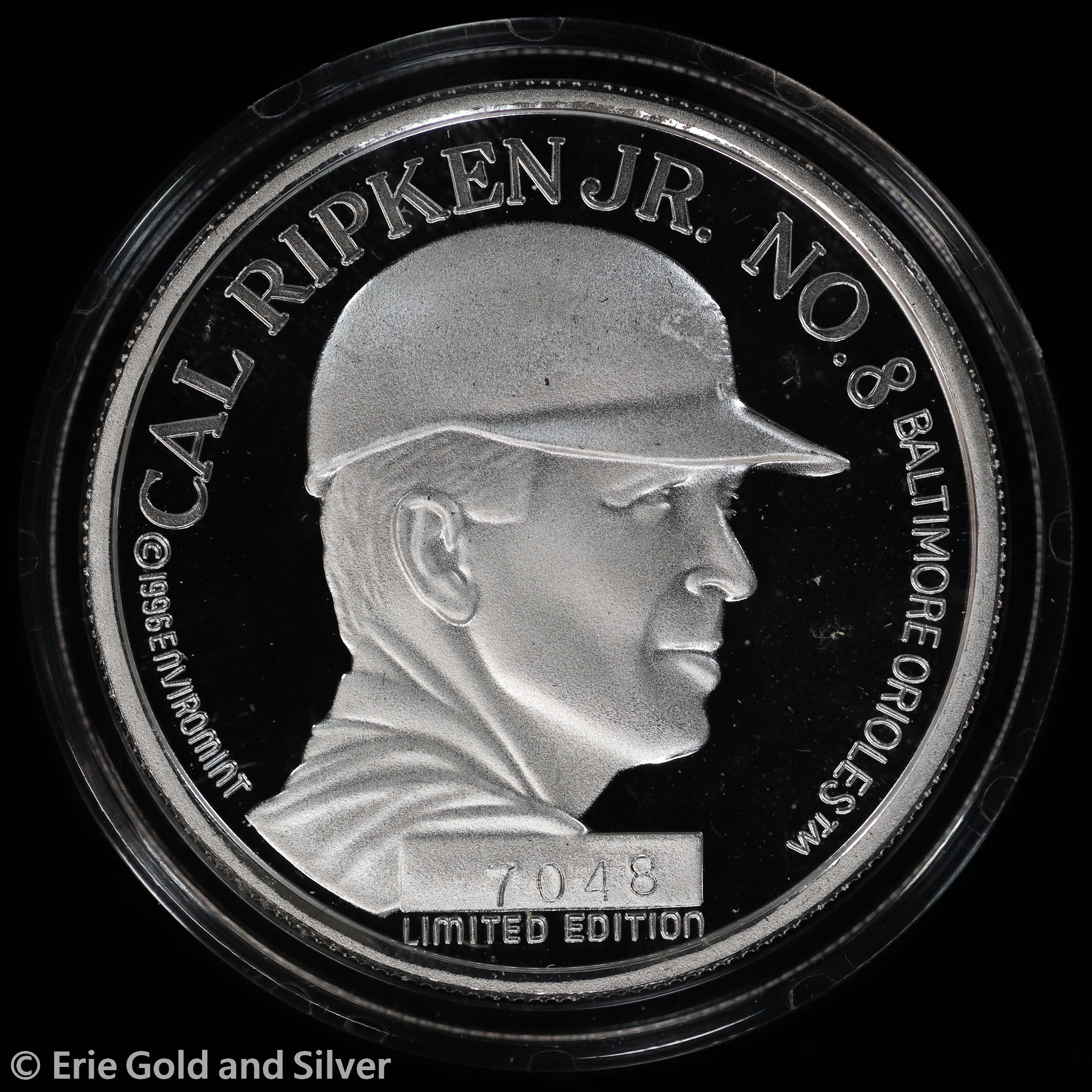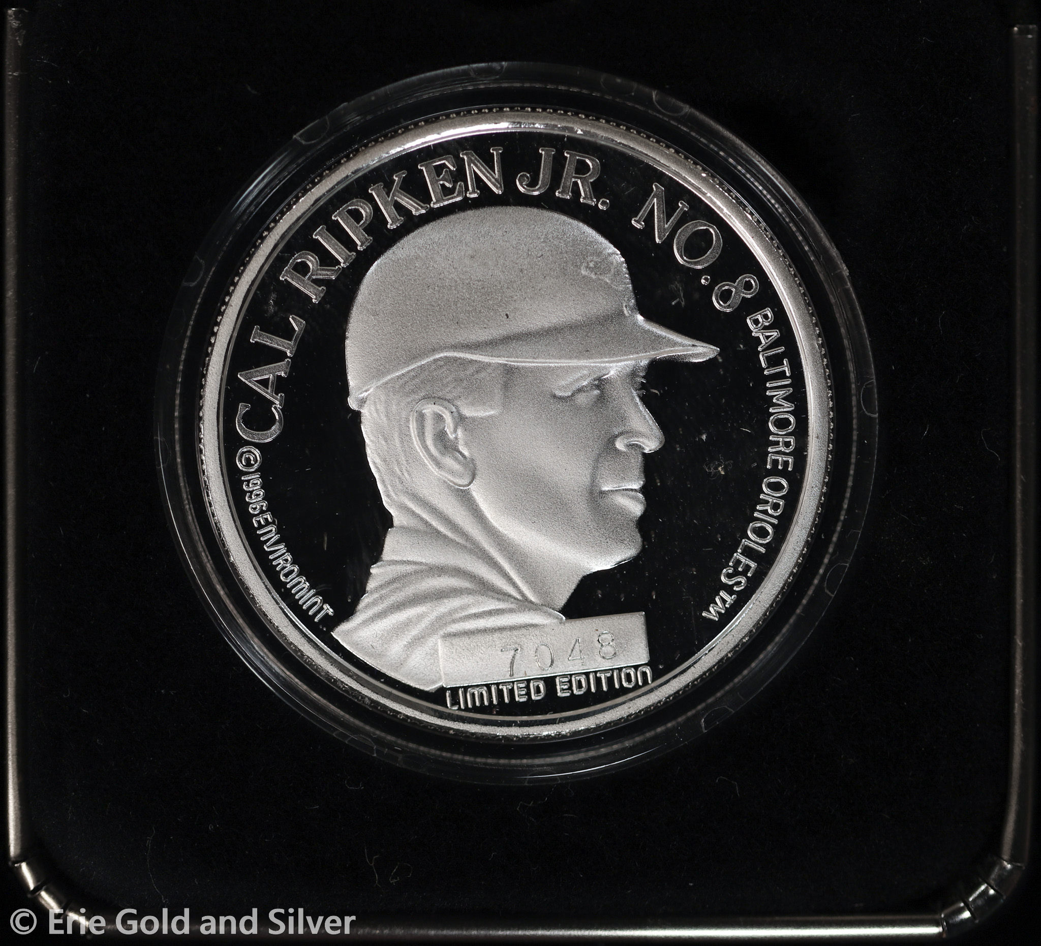 For sale is a 1996 Enviromint Cal Ripken Jr. 1 oz Silver Commemorative Medallion w/ Box & COA.