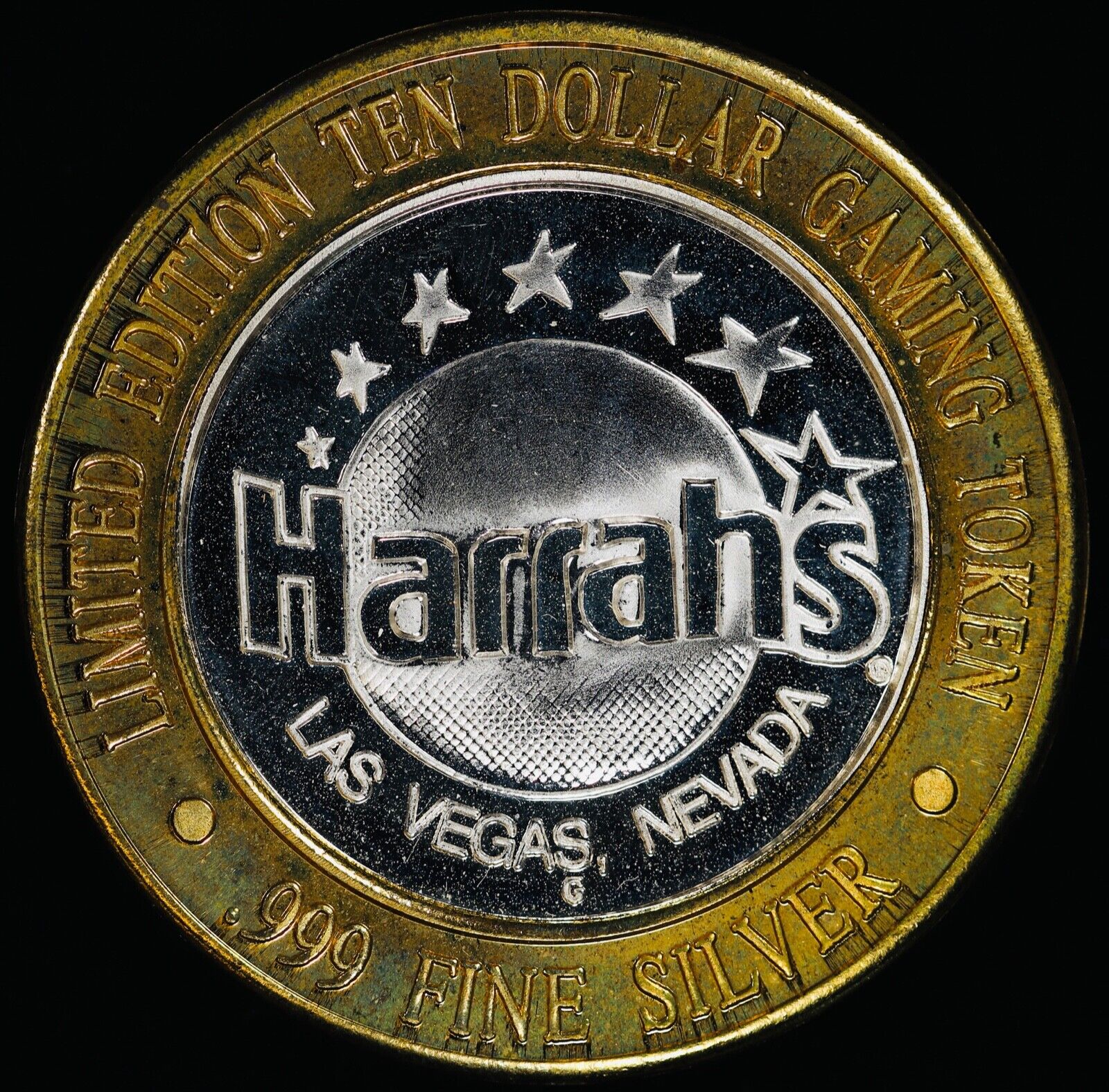 1996 Harrah's Las Vegas NV $10 Casino .999 Silver Strike Sax Player