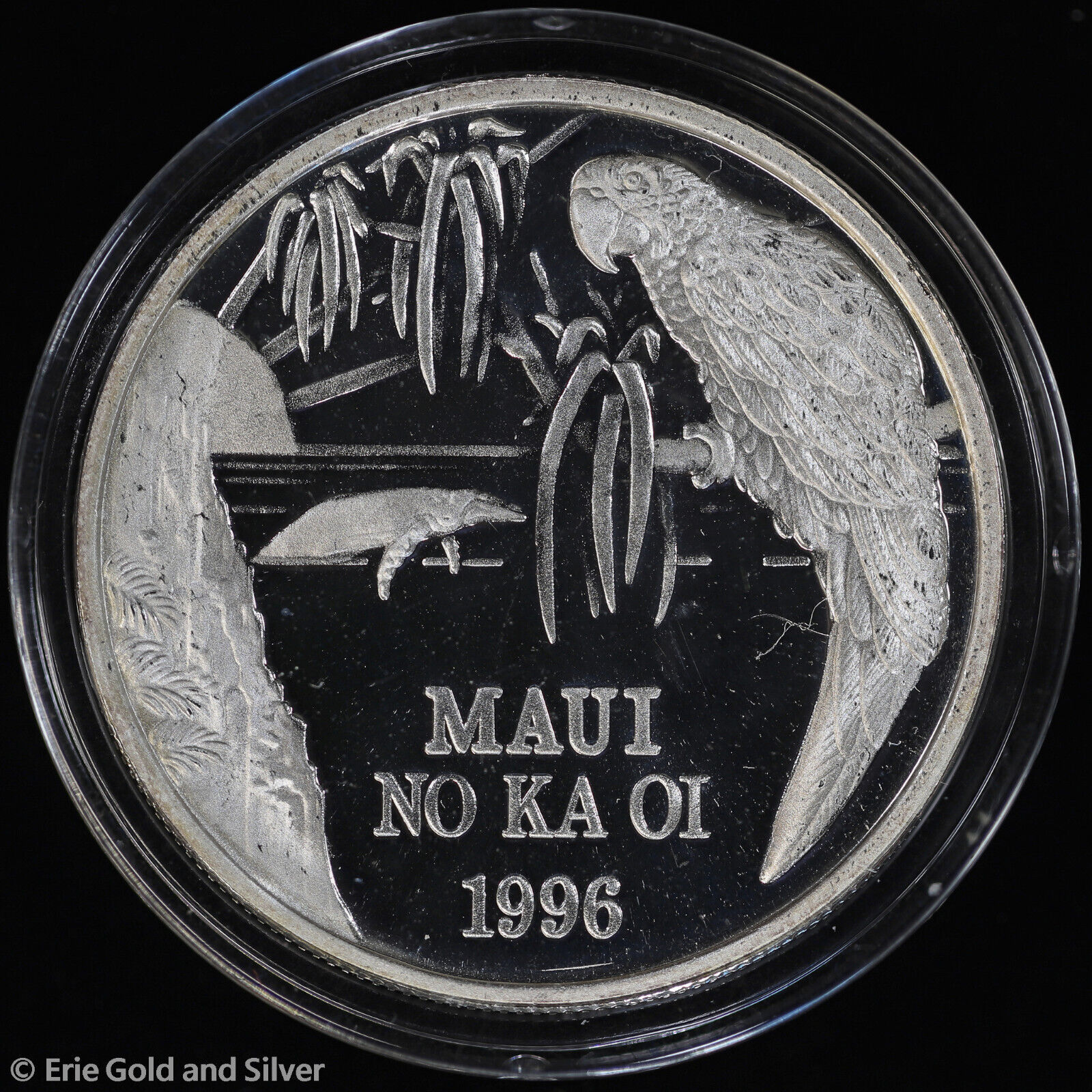 1996 Proof 1 oz Silver Maui Trade Dollar Parrot w/ Box & COA