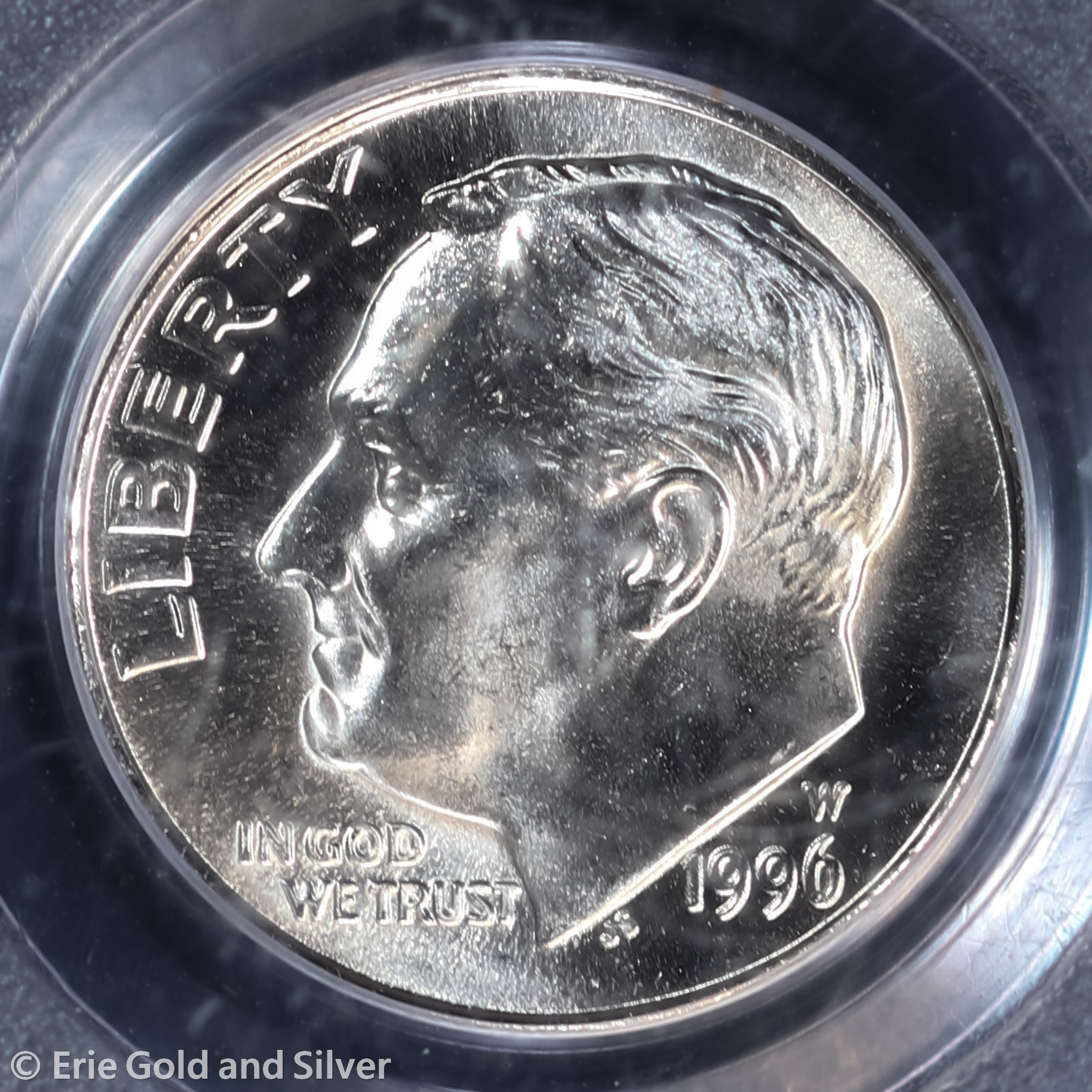 For sale is a 1996-W Roosevelt Dime. Certified / graded by PCGS at MS 67 FB.