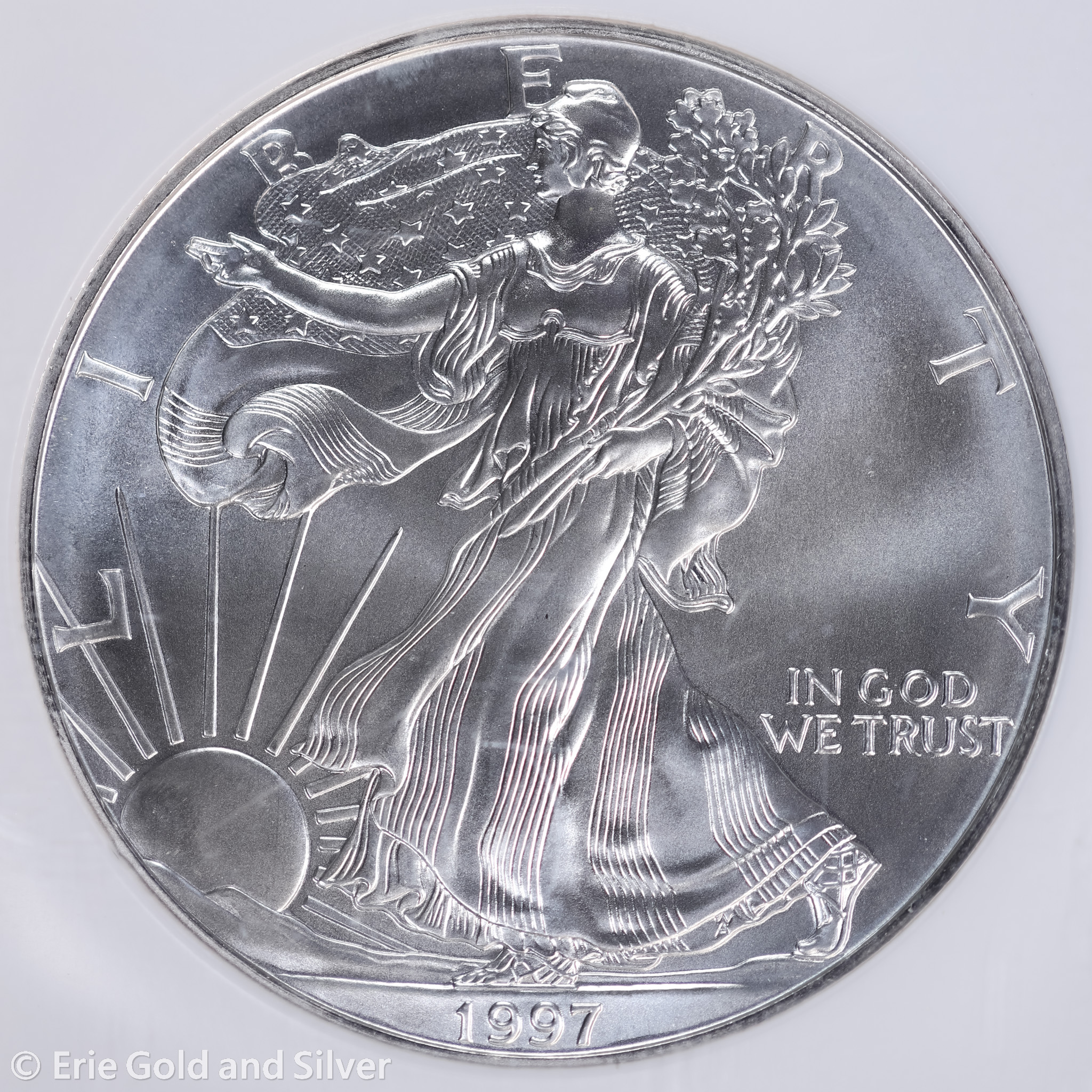 For sale is a 1997 American Silver Eagle. Certified / graded by NGC at MS 69.