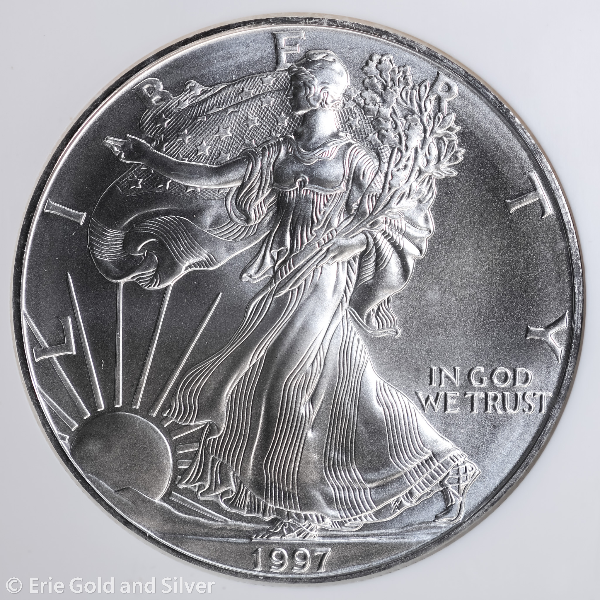 For sale is a 1997 American Silver Eagle. Certified / graded by NGC at MS 69.