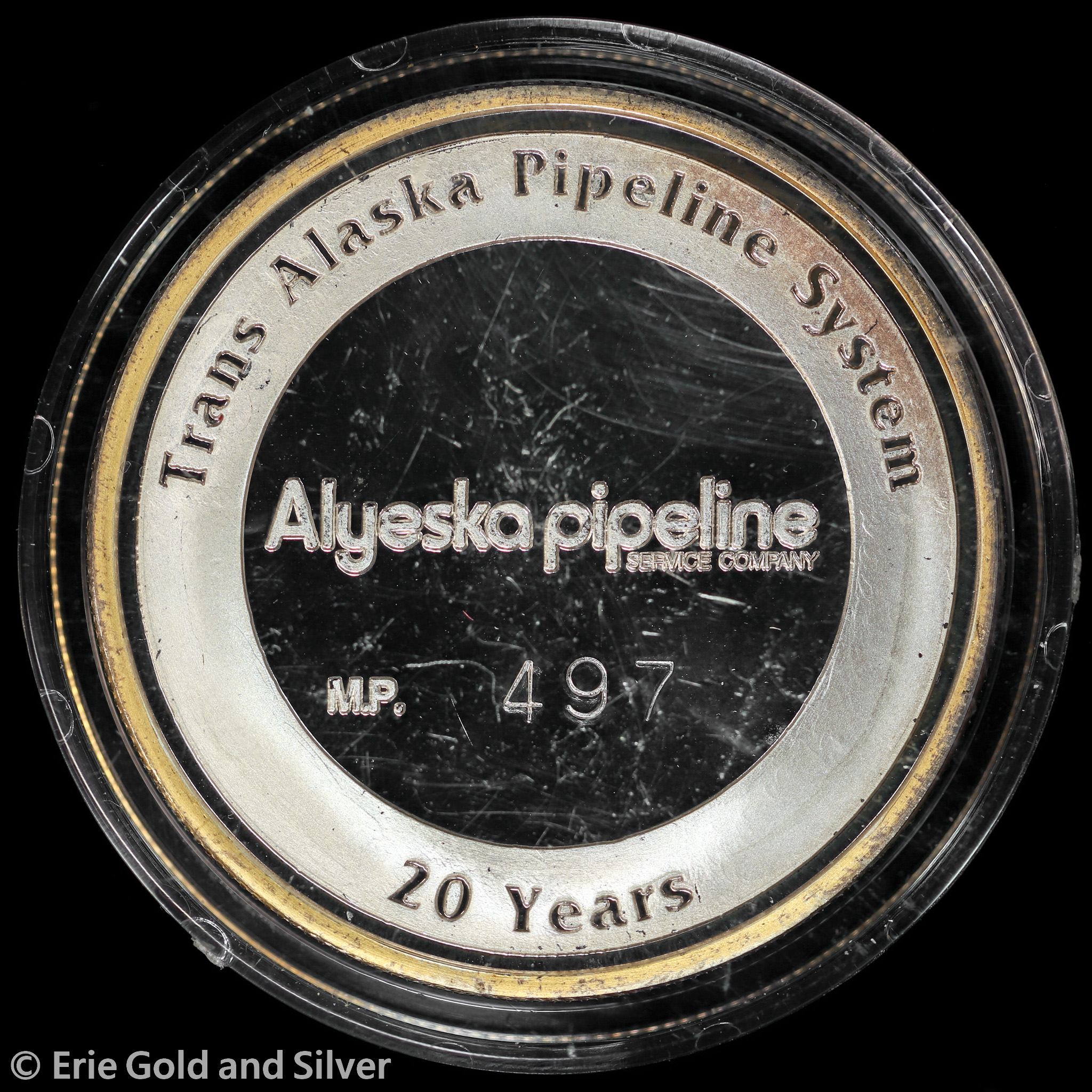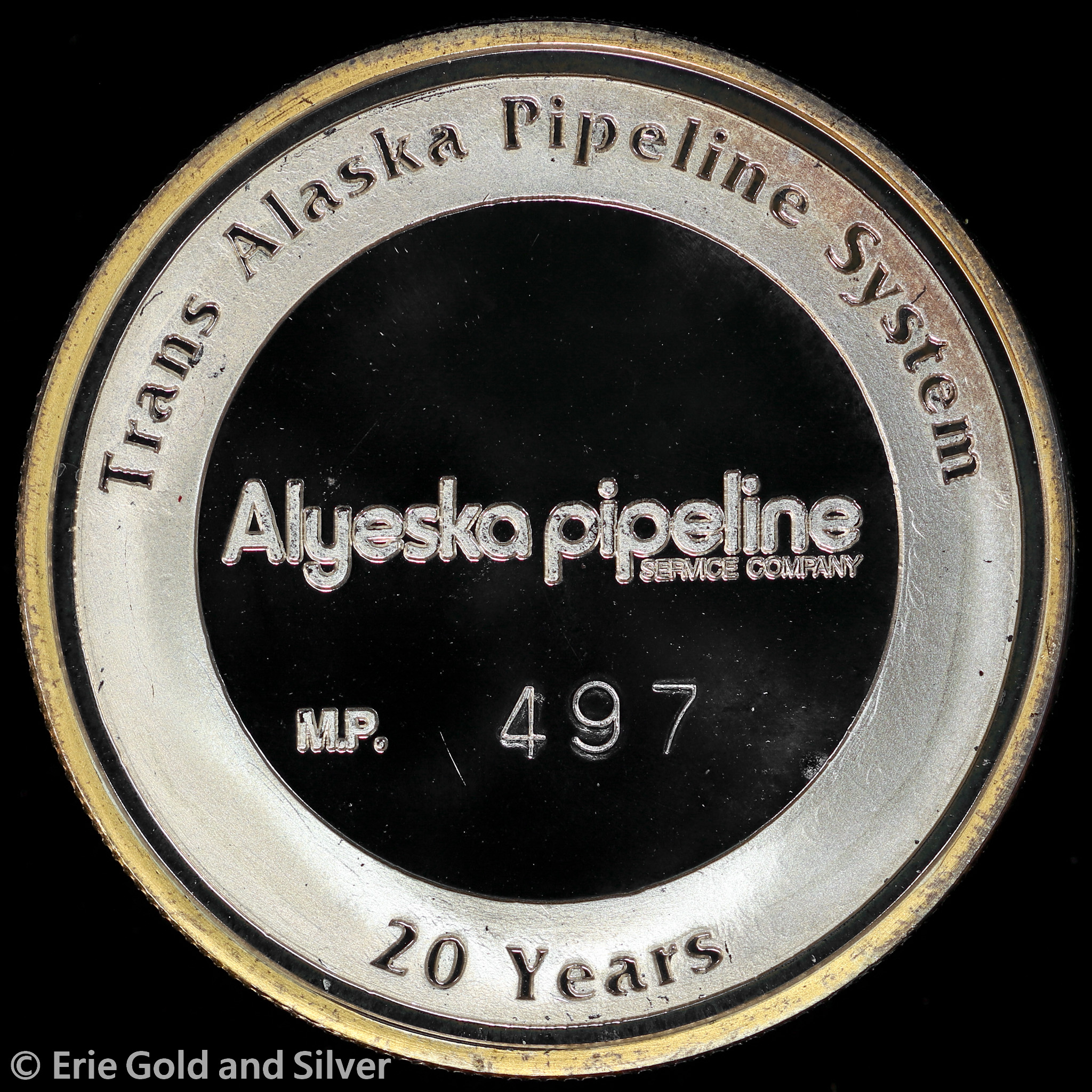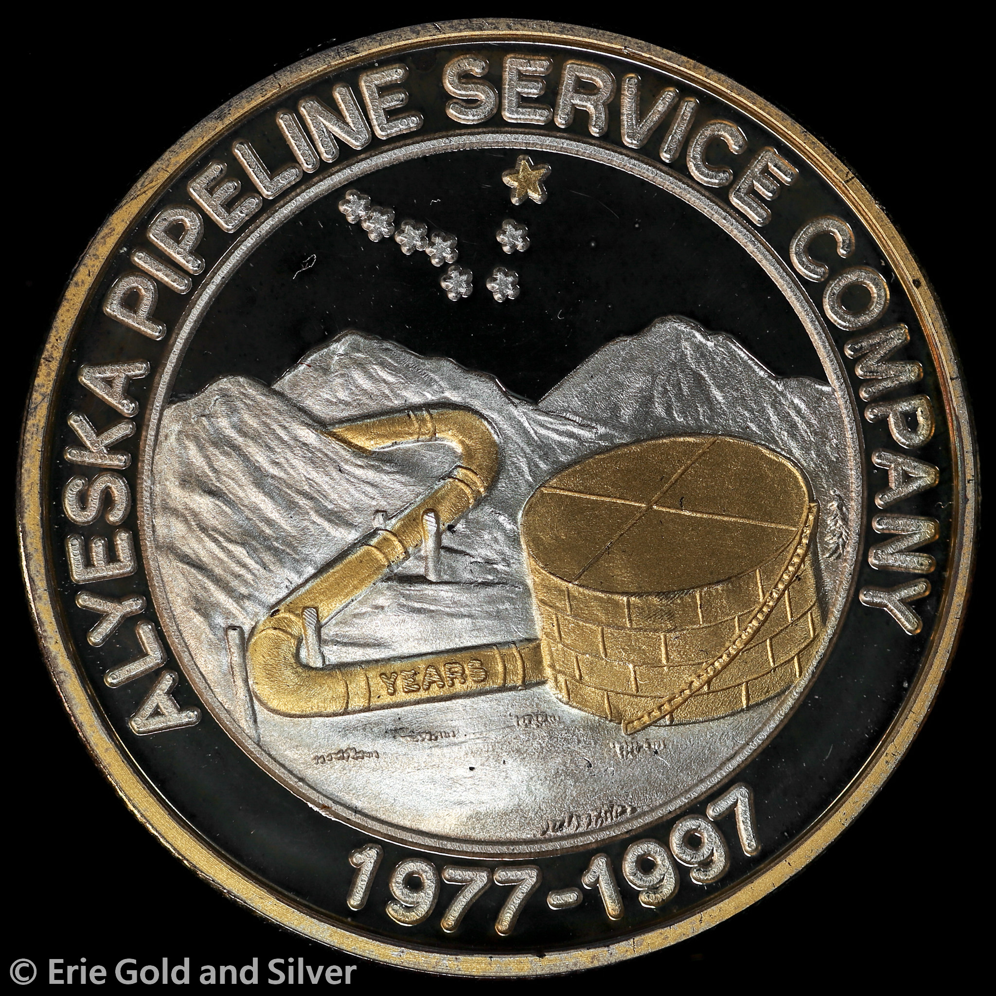 For sale is a 1997 Alyeska Pipeline 1 oz Silver w/ 24 Karat Single Gold Relief Graded Numbered.