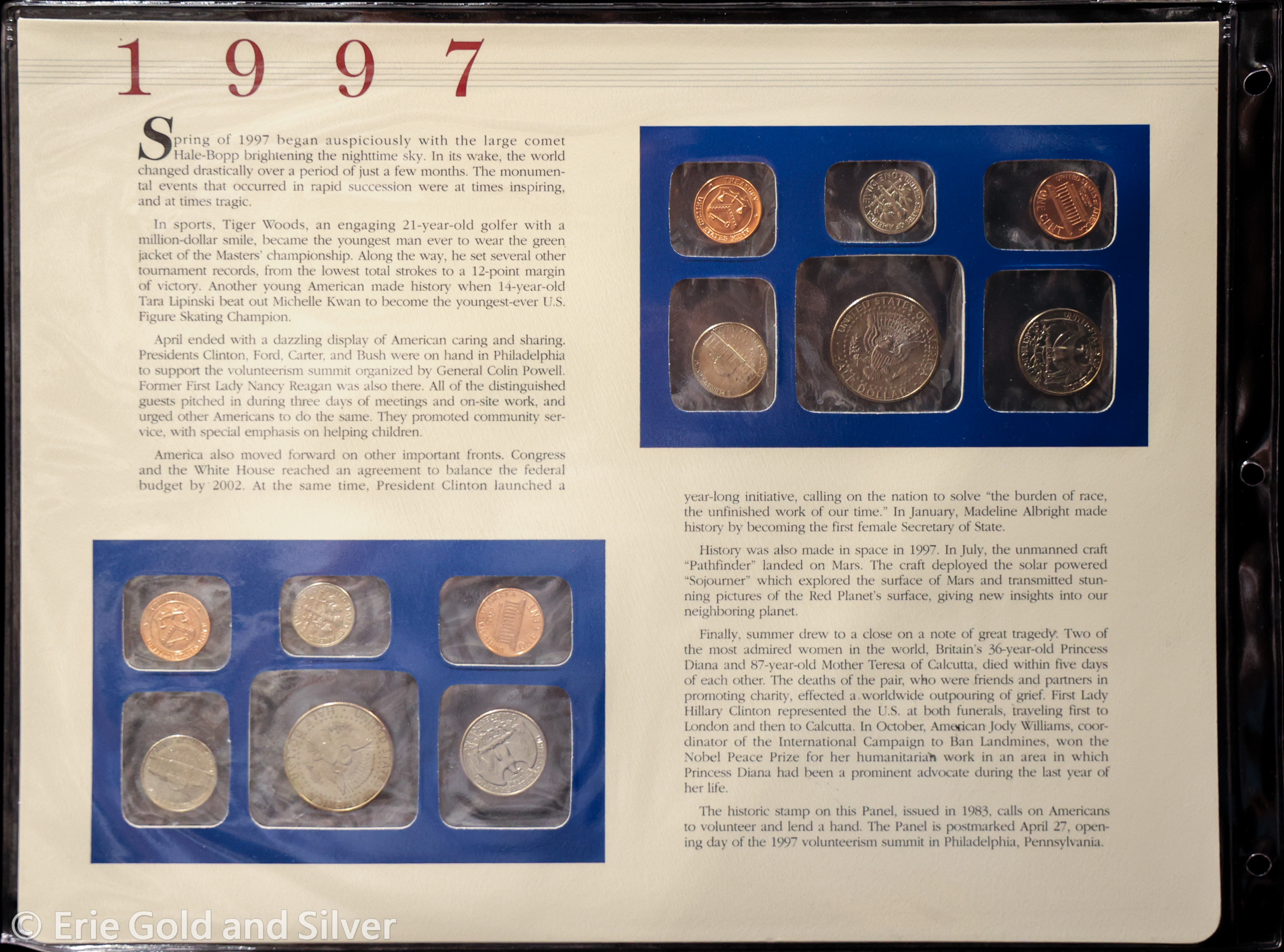 For sale is a 1997-P/D PCS Uncirculated US Mint Coin & Stamp Set Panel.