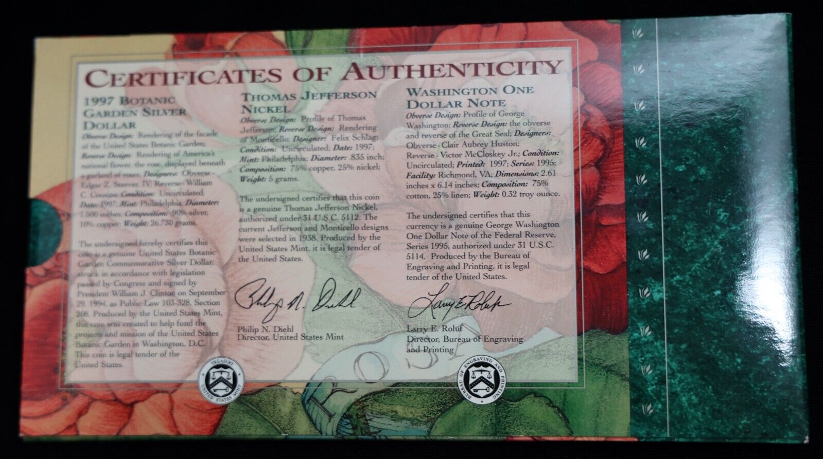 1997 US Botanic Garden Coinage and Currency Set US Mint