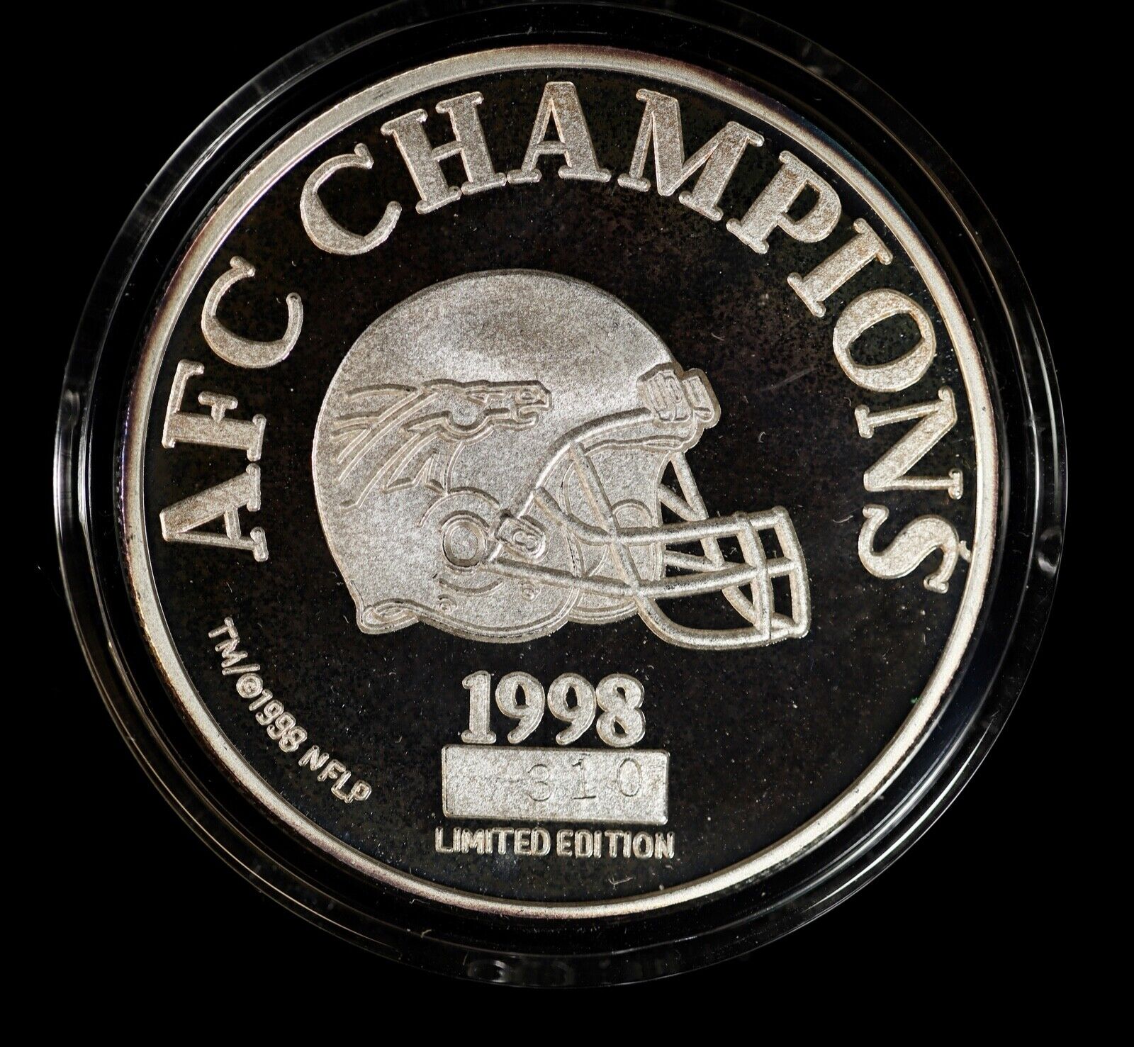 For sale is a 1998 AFC Champions Broncos 1oz Silver Round Denver, CO Mile High Stadium. View pictures for details and condition, the coin pictured is the exact coin you will receive. Feel free to contact us with any questions.