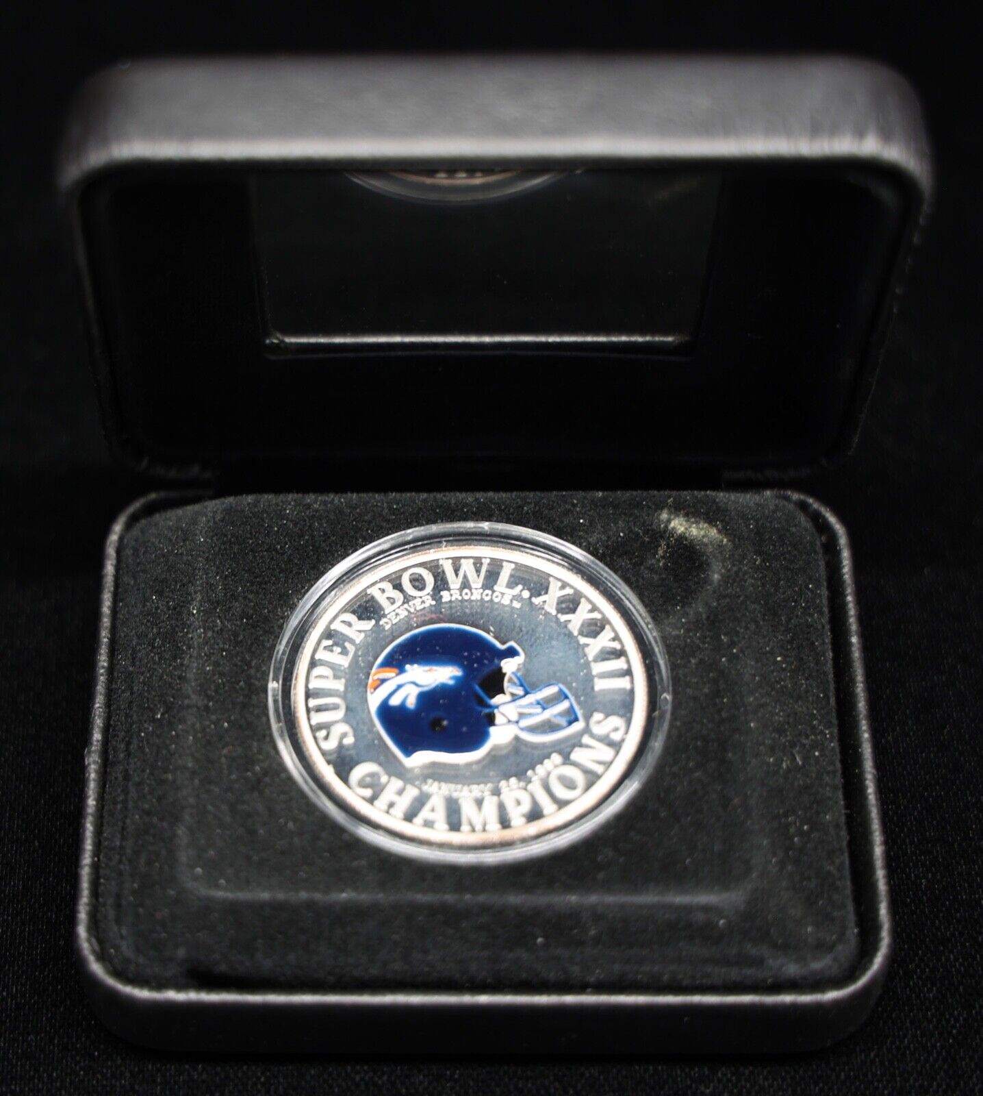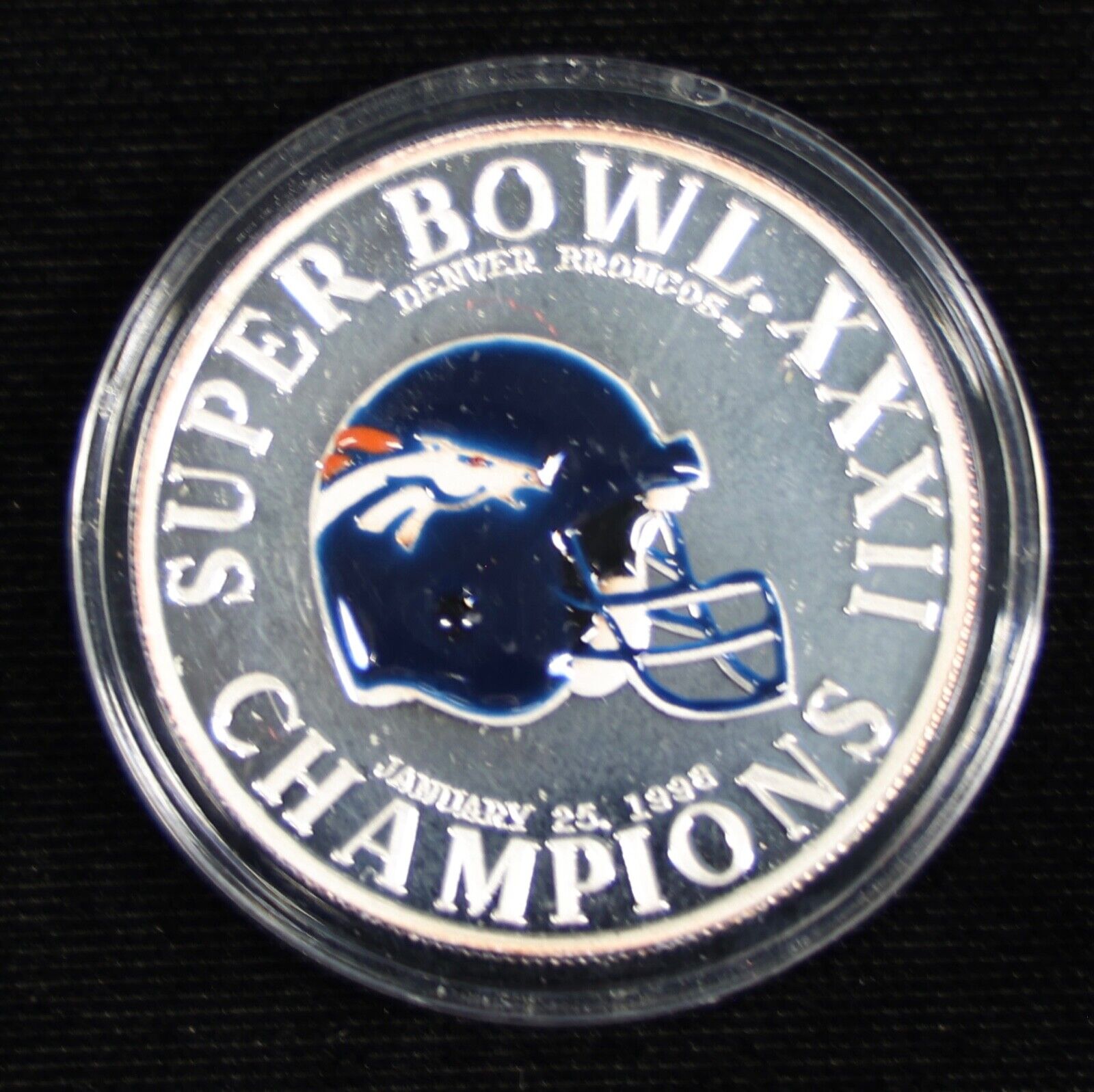 1998 Denver Broncos Super Bowl XXXII 32 Champions 1 oz Silver Round Colorized