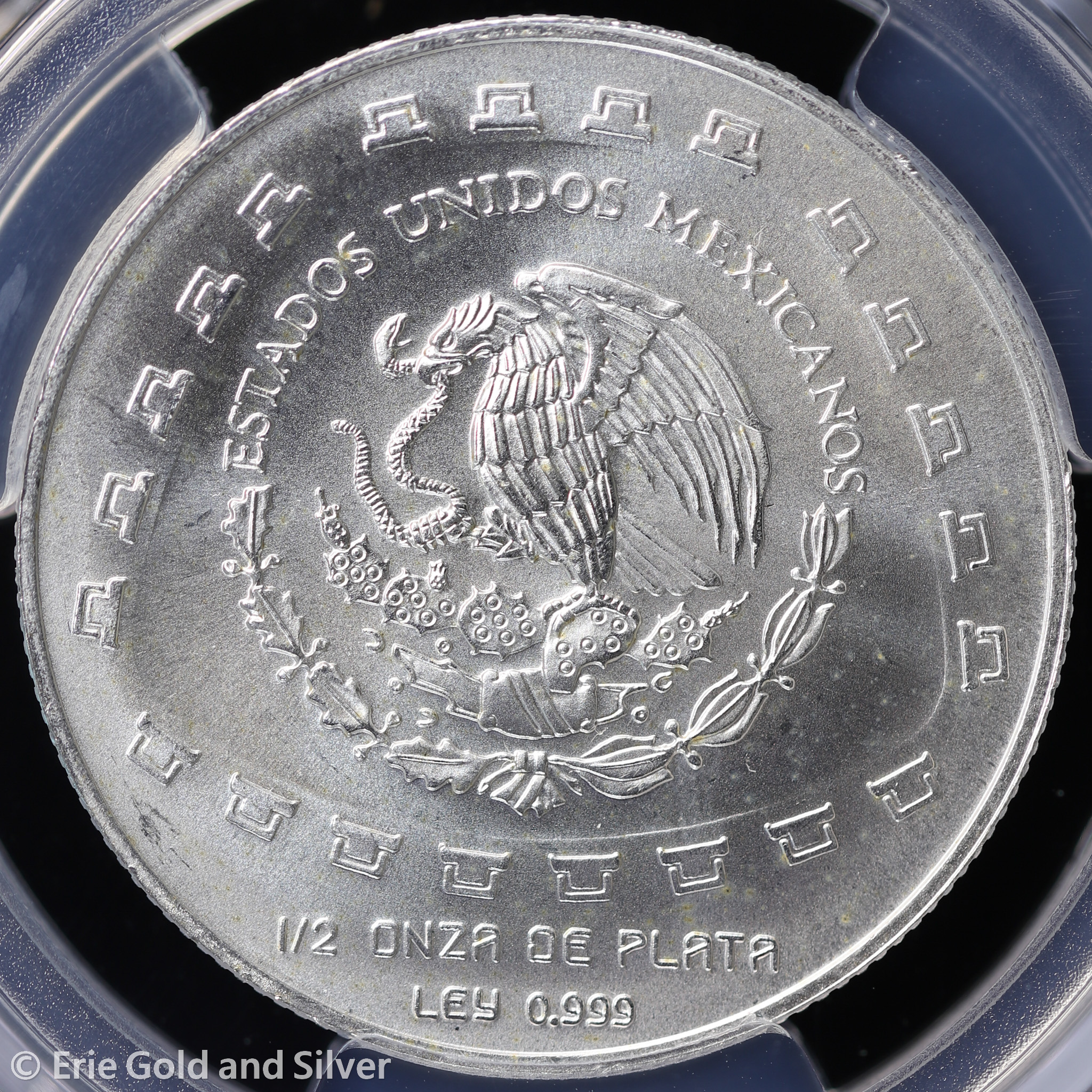 For sale is a 1998-Mo Mexico Toltec Series - Jaguar 1/2 oz Silver 2 Pesos. Certified / graded by PCGS at MS 67.