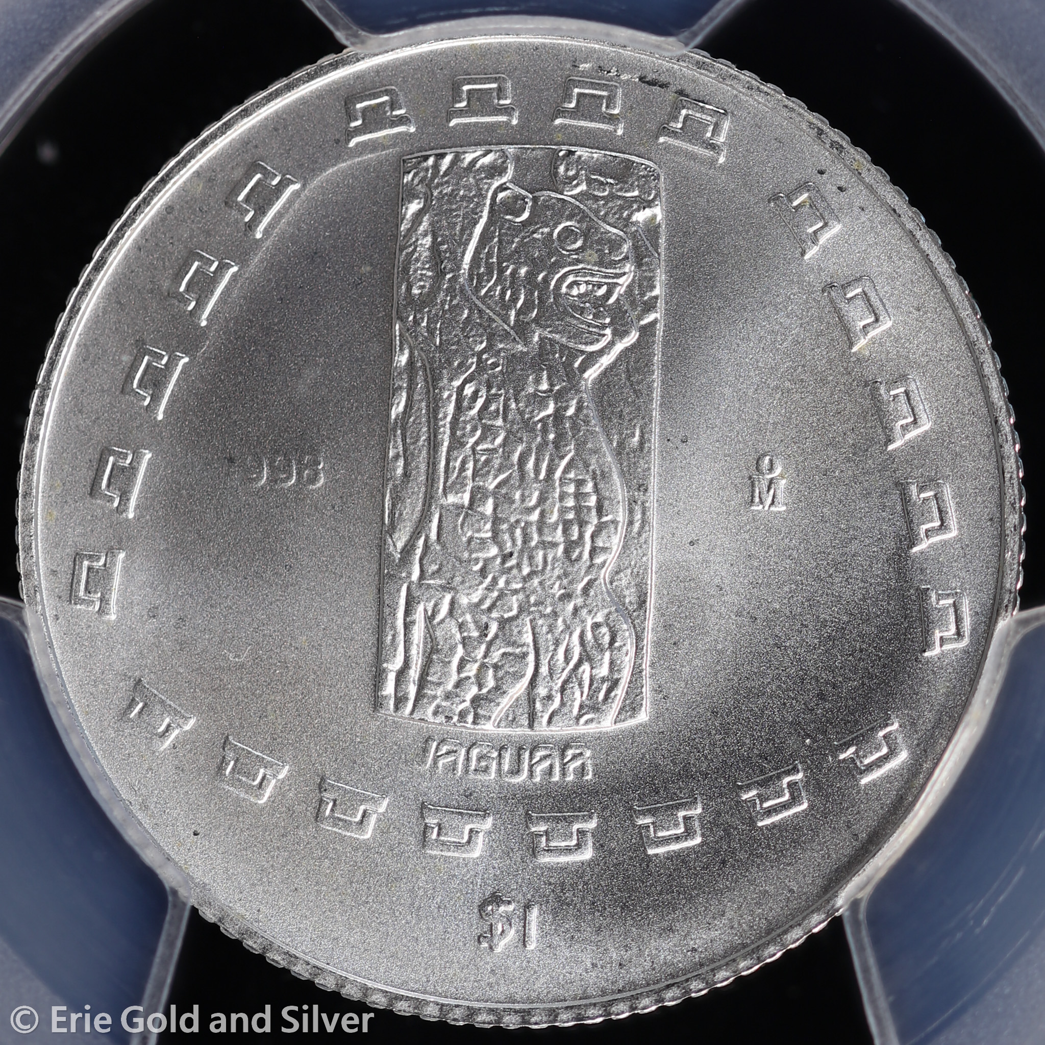 For sale is a 1998-Mo Mexico Toltec Series - Jaguar 1/4 oz Silver Peso. Certified / graded by PCGS at MS 69.