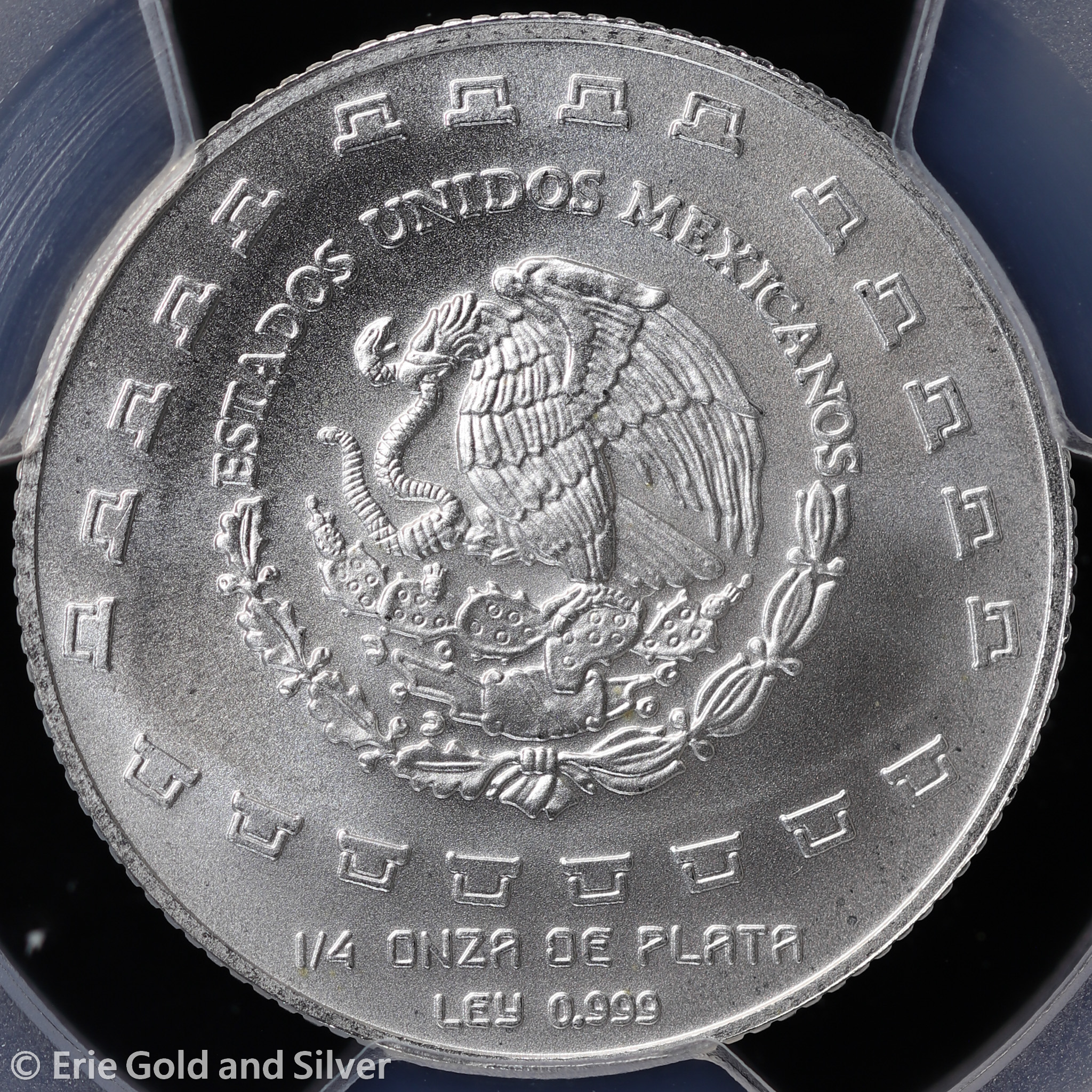 1998-Mo Mexico Toltec Series - Jaguar 1/4 oz Silver Peso PCGS MS 69