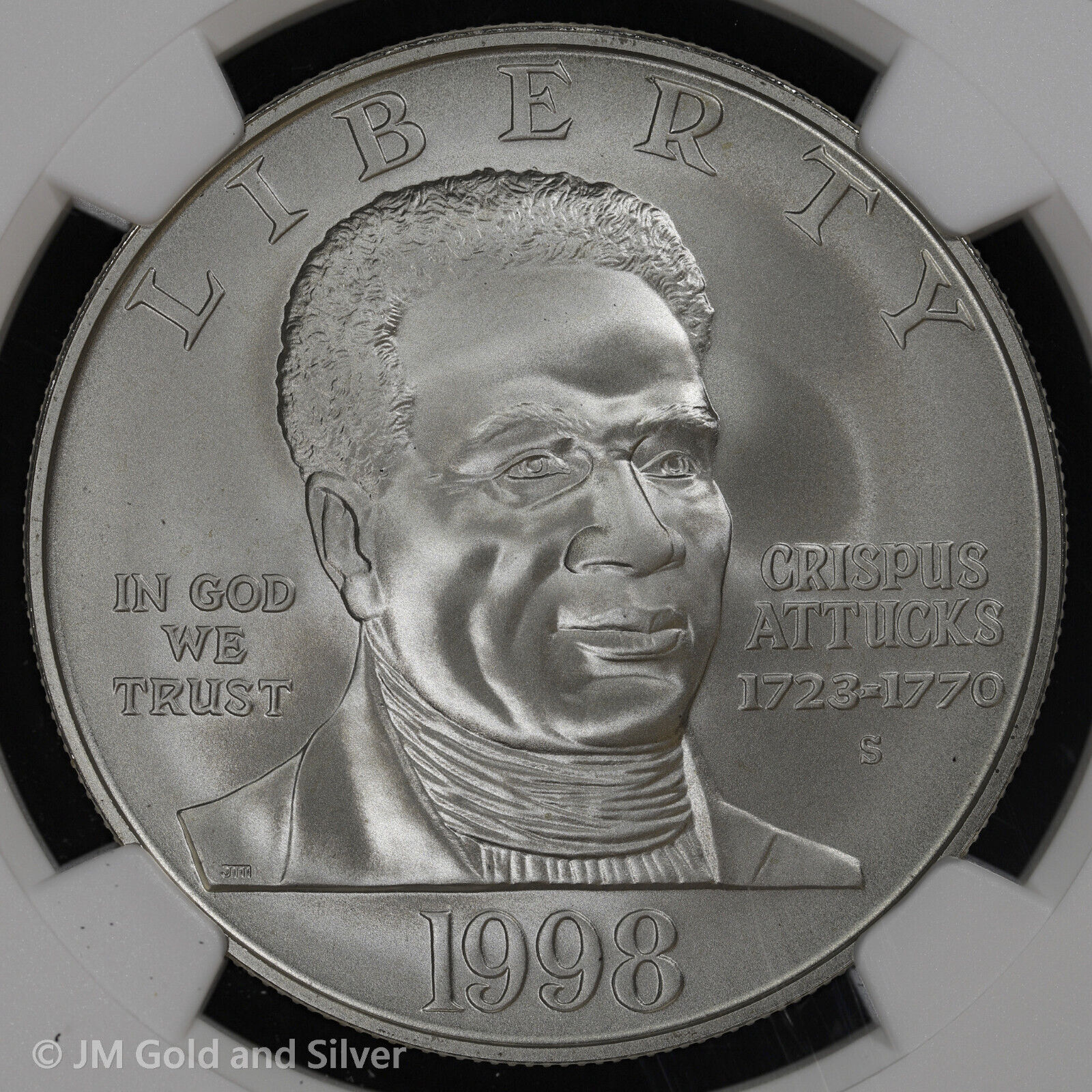1998-S $1 Black Patriots Crispus Attucks Commemorative Silver Dollar NGC MS 69 | UNC BU