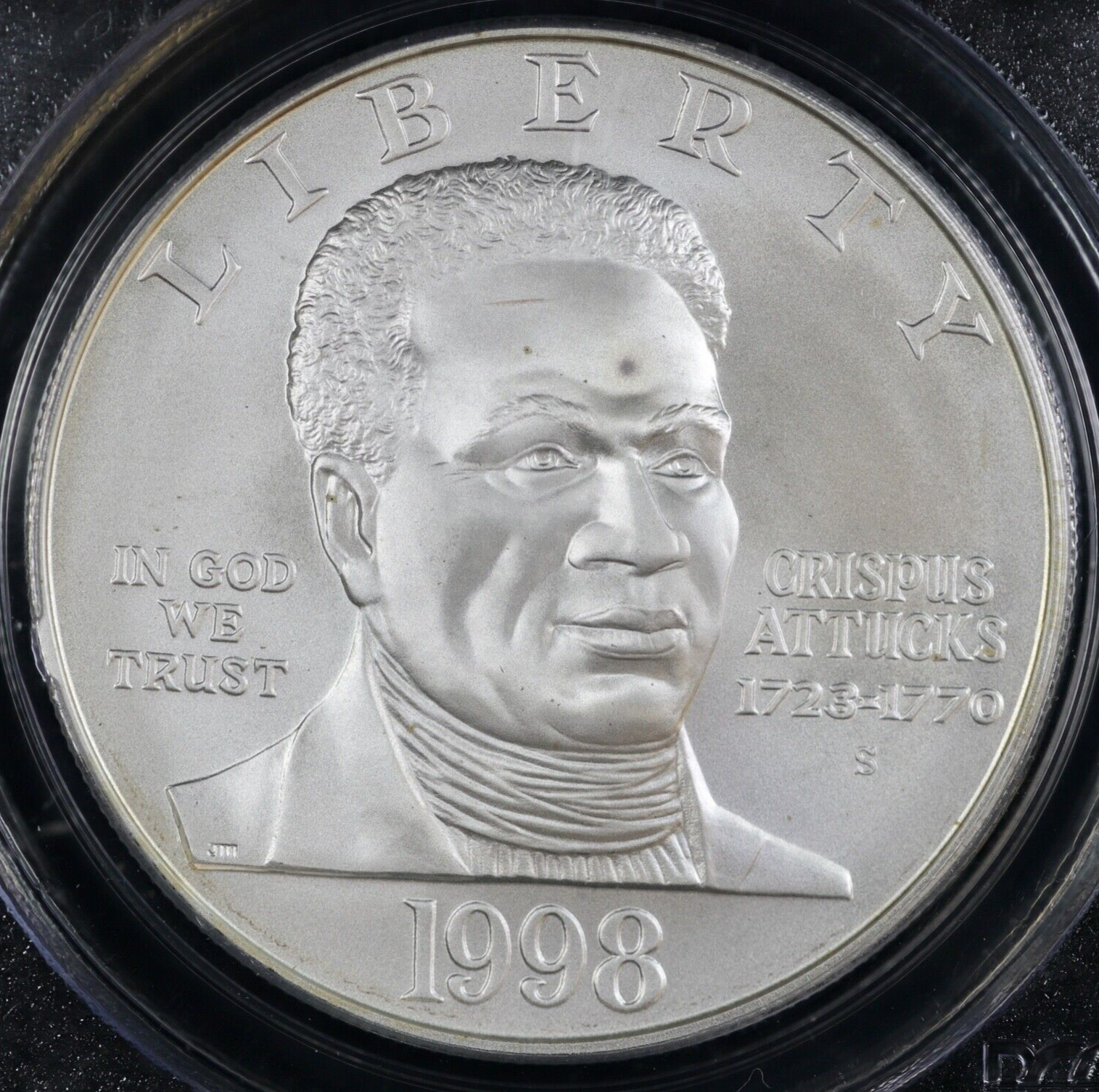 1998-S $1 Black Patriots Crispus Attucks Commem Silver Dollar PCGS MS 68