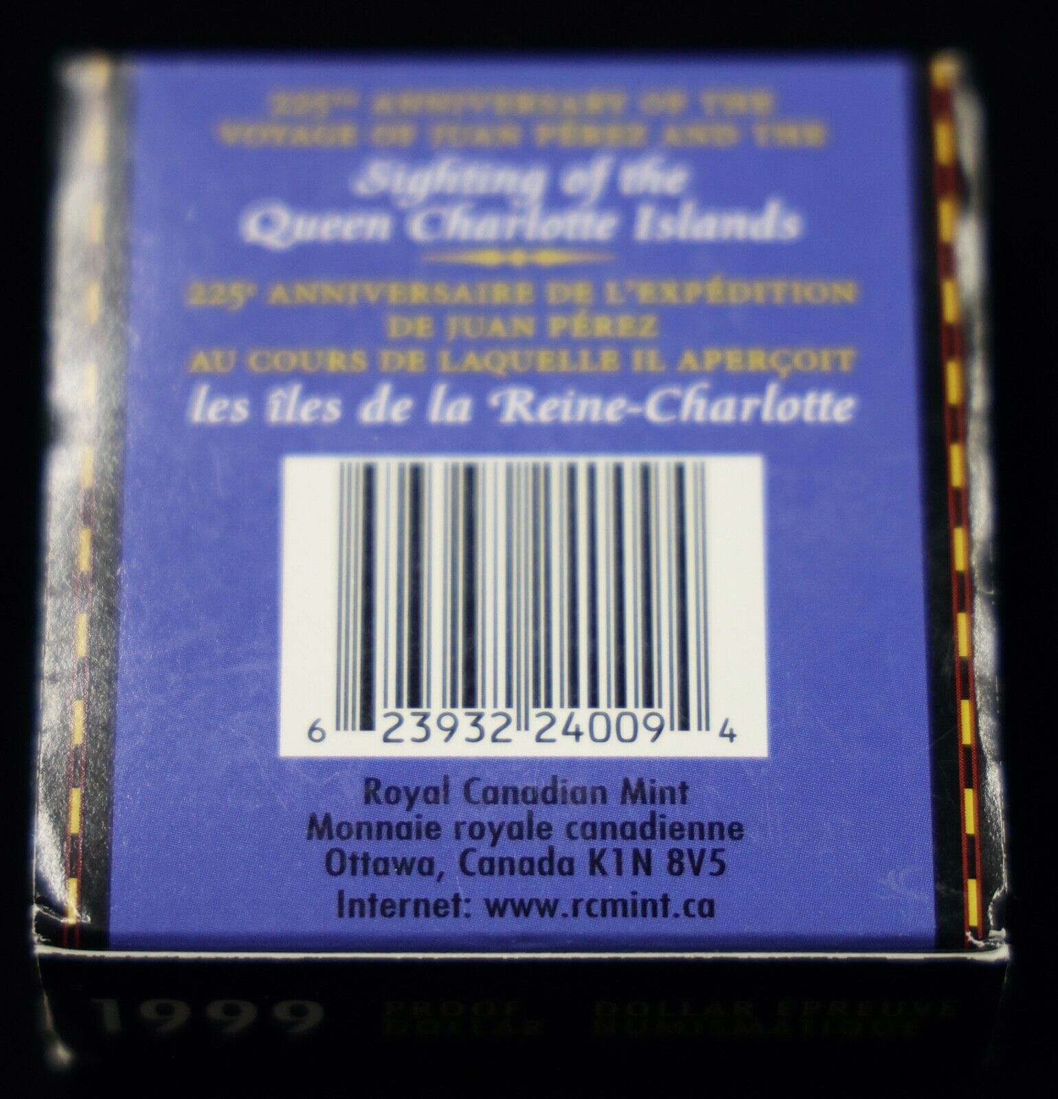 1999 Canada Proof Silver Dollar 225th Anniversary Queen Charlotte Islands w/ Box