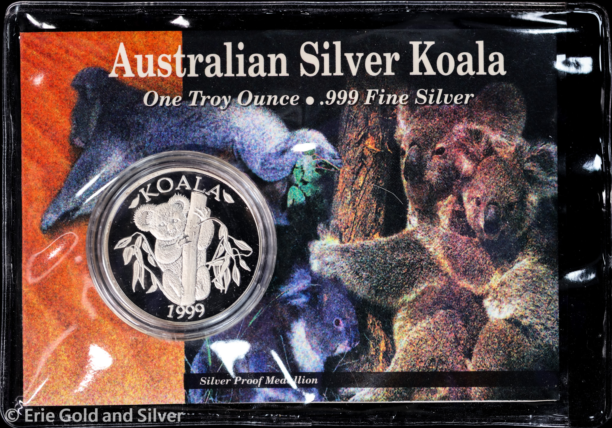 For sale is a 1999 Downie's Australian Koala 1 oz Silver Proof-like Medallion in OGP.
