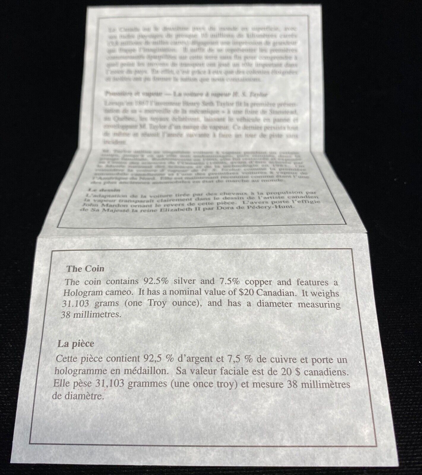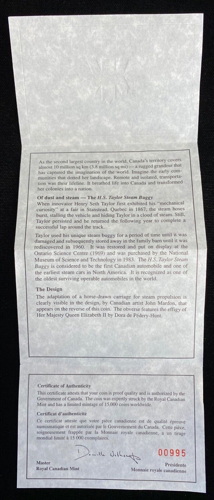 2000 Canada Transportation The H.S. Taylor Steam Buggy Hologram with Box/COA