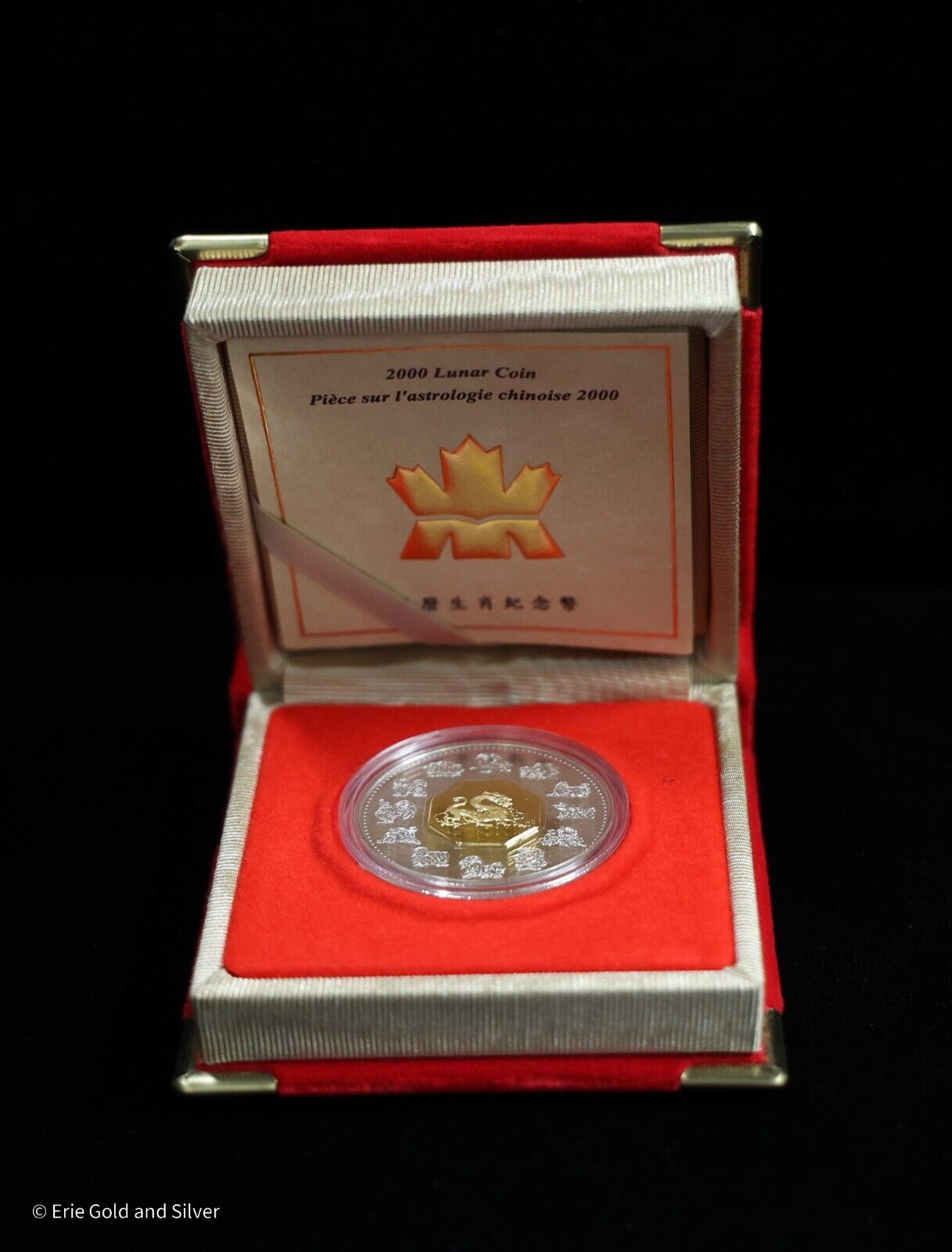 2000 Lunar Sterling Silver Gold Gilt Queen Elizabeth Coin in Box w/ COA
