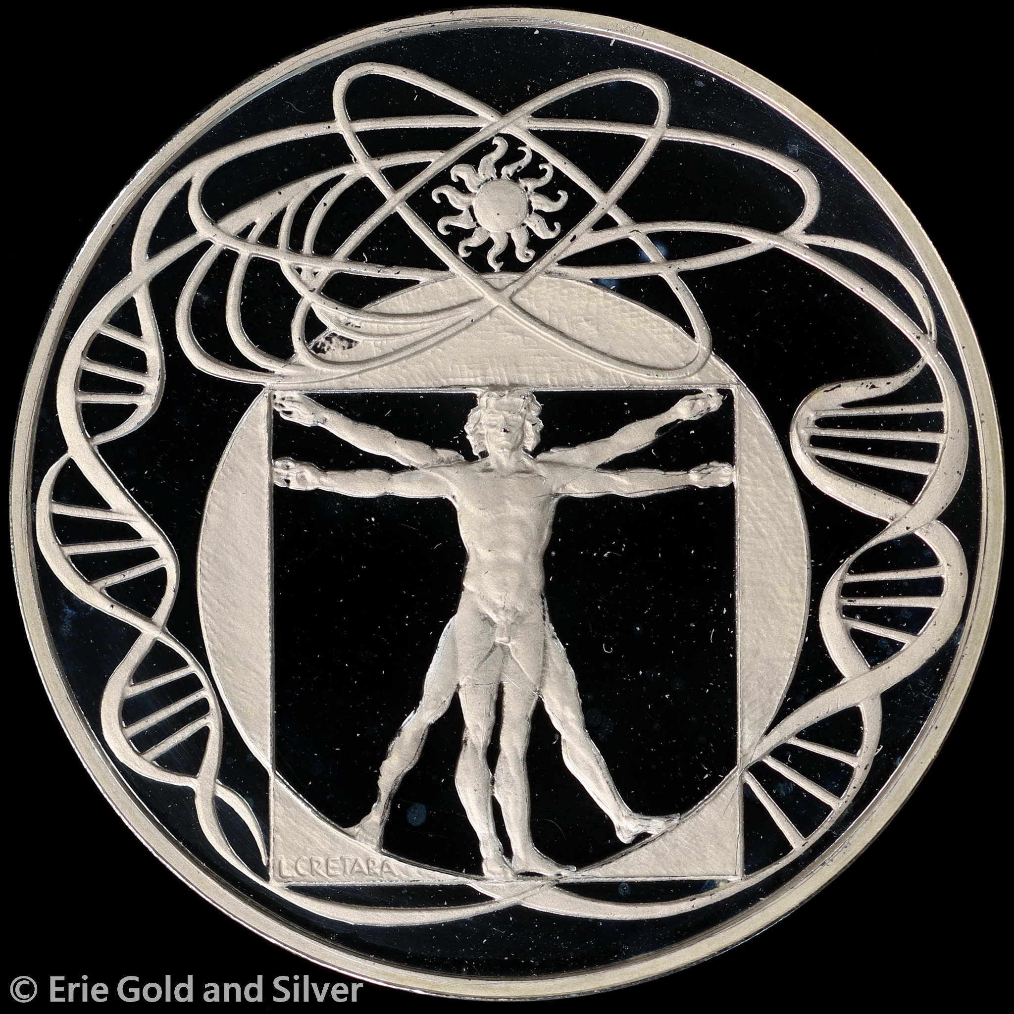 For sale is a 2000 Millennium da Vinci Vitruvian Man Power of People 1 oz Silver Medal.