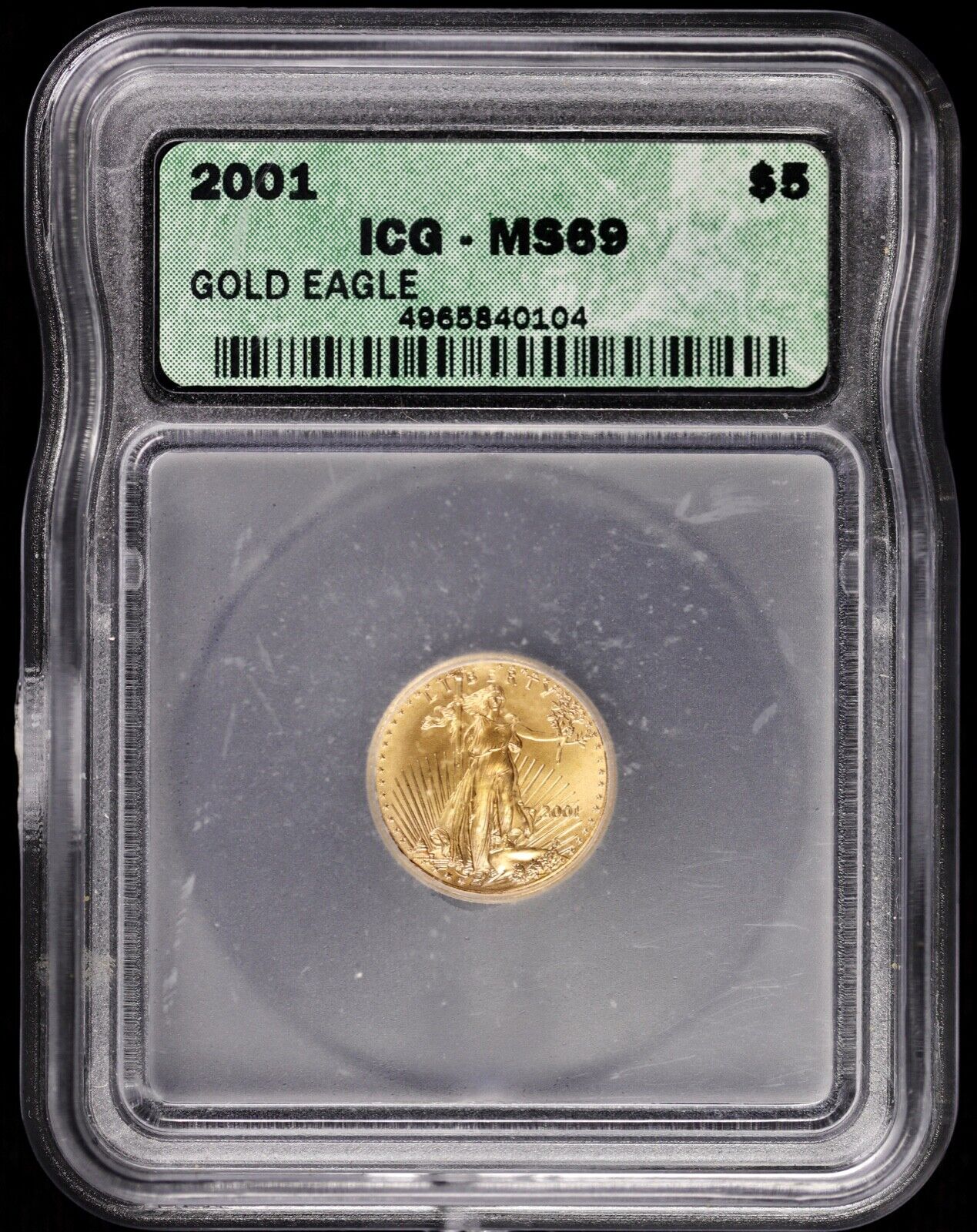 2001 1/10 oz $5 Gold Eagle ICG MS69 AGE (BU, Uncirculated)