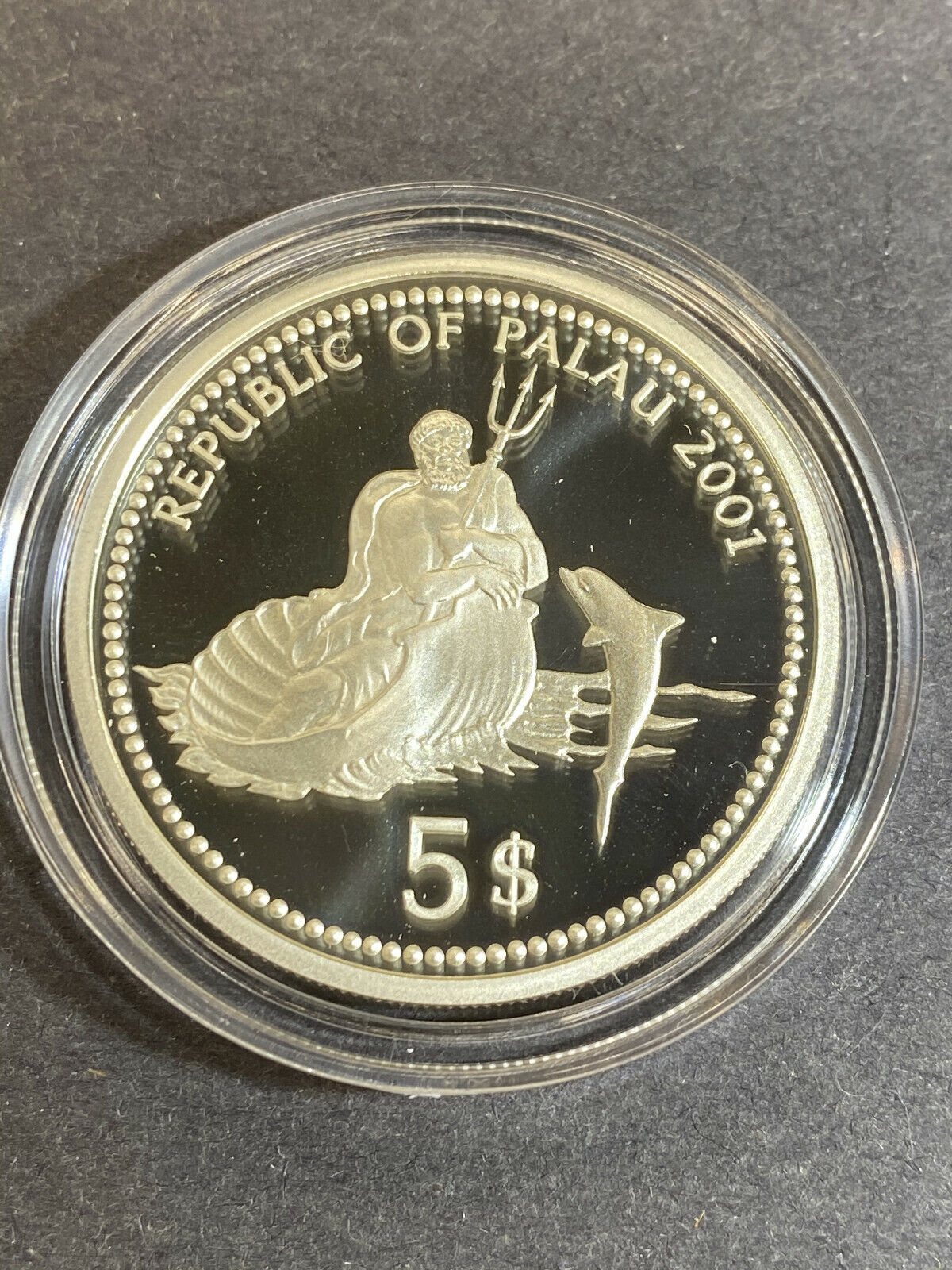 2001 $5 Palau Marine Life Protection Jellyfish Silver Colorized Coin