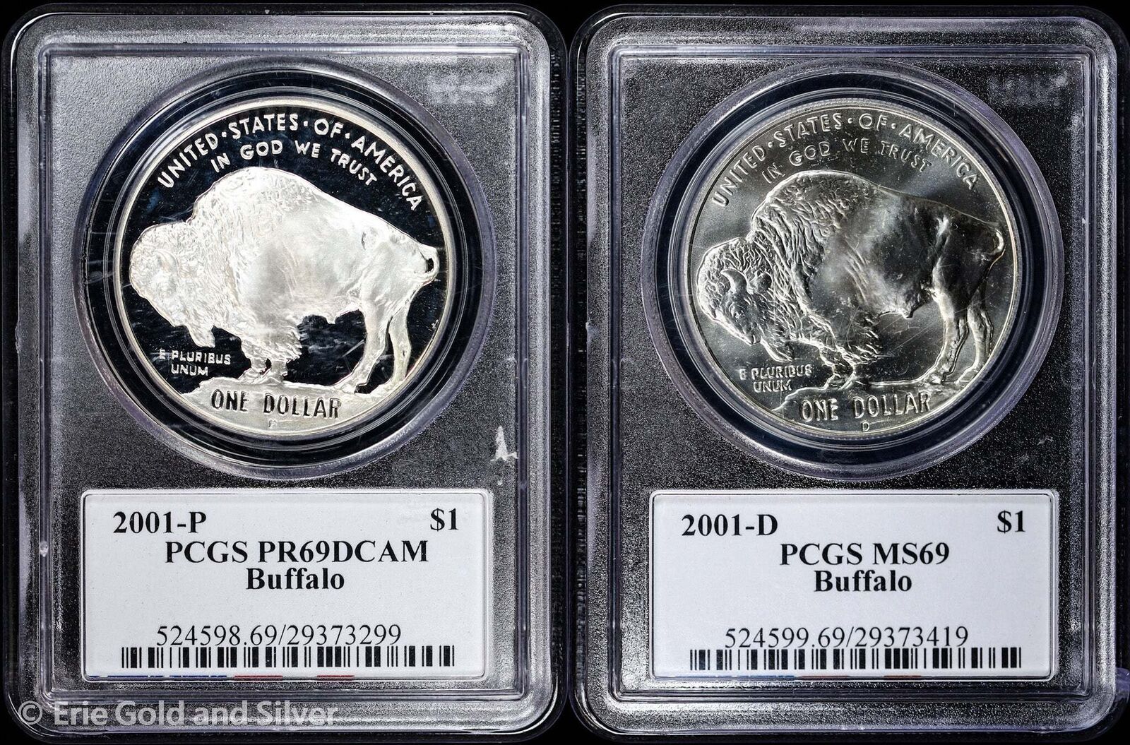 2001-D&P $1 Silver Buffalo Commem 2-Coin Set PCGS MS & PR 69 | Moy Signed