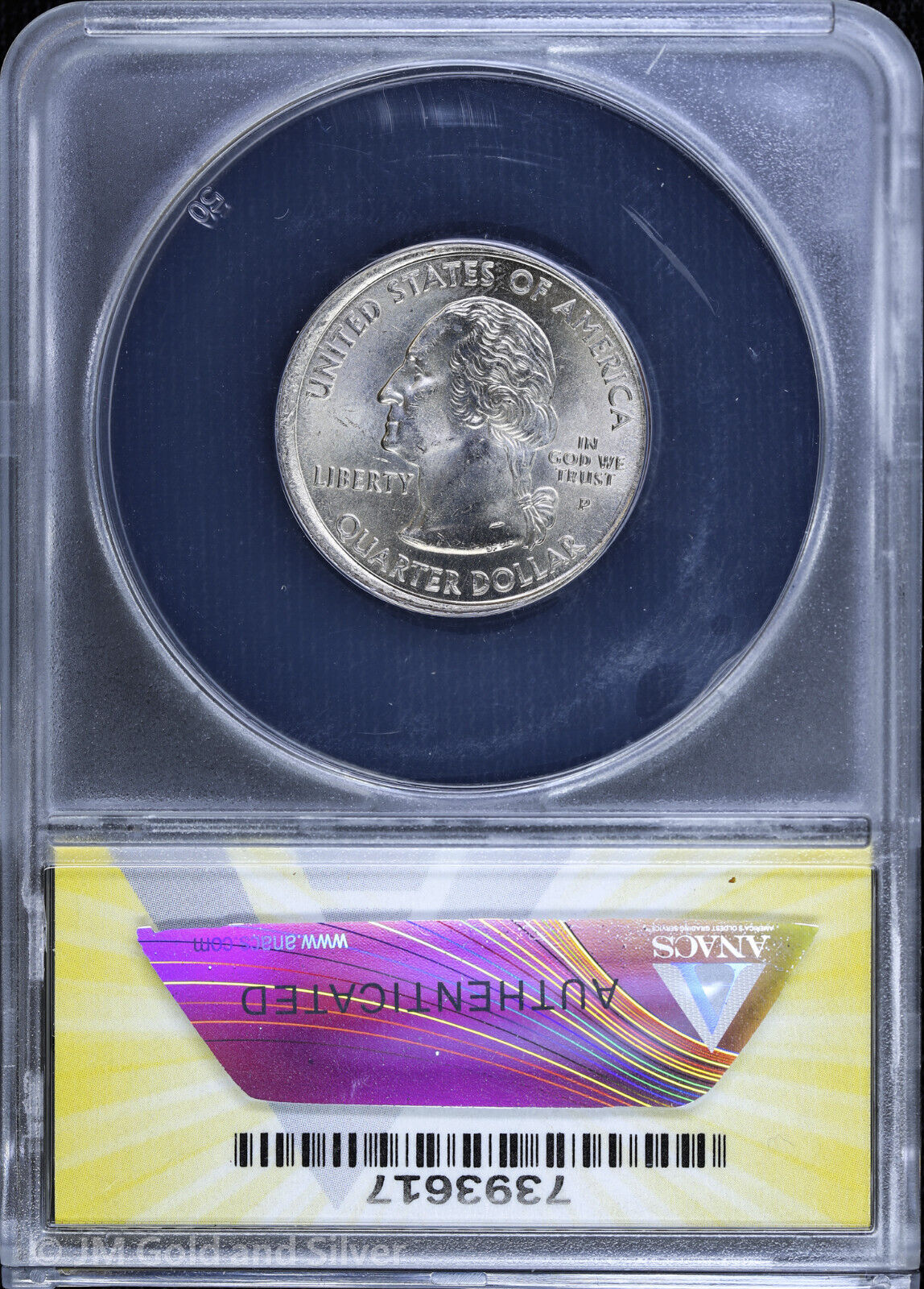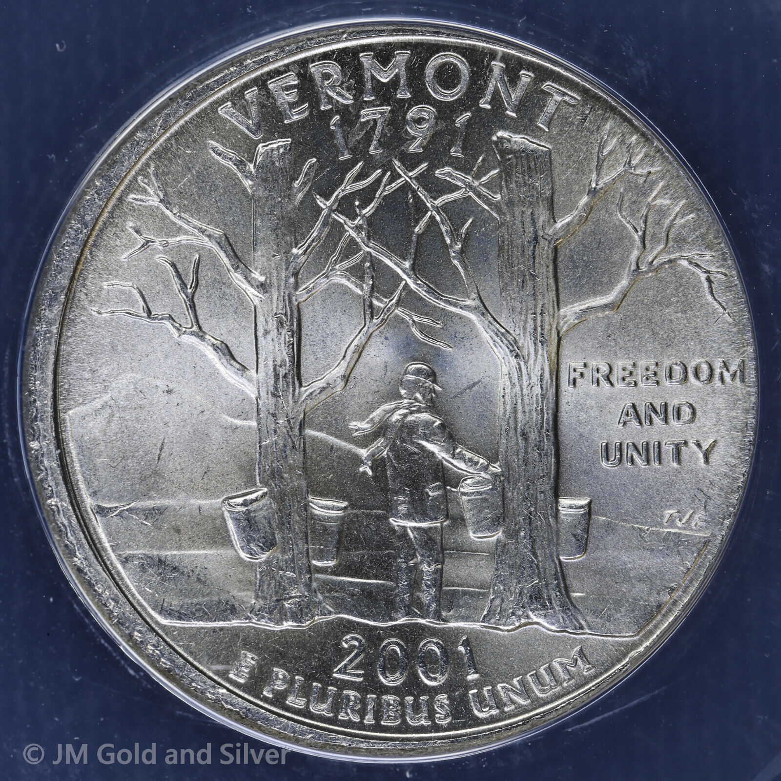2001-P 25C Vermont State Quarter ANACS MS 65 | Tilted Partial Collar